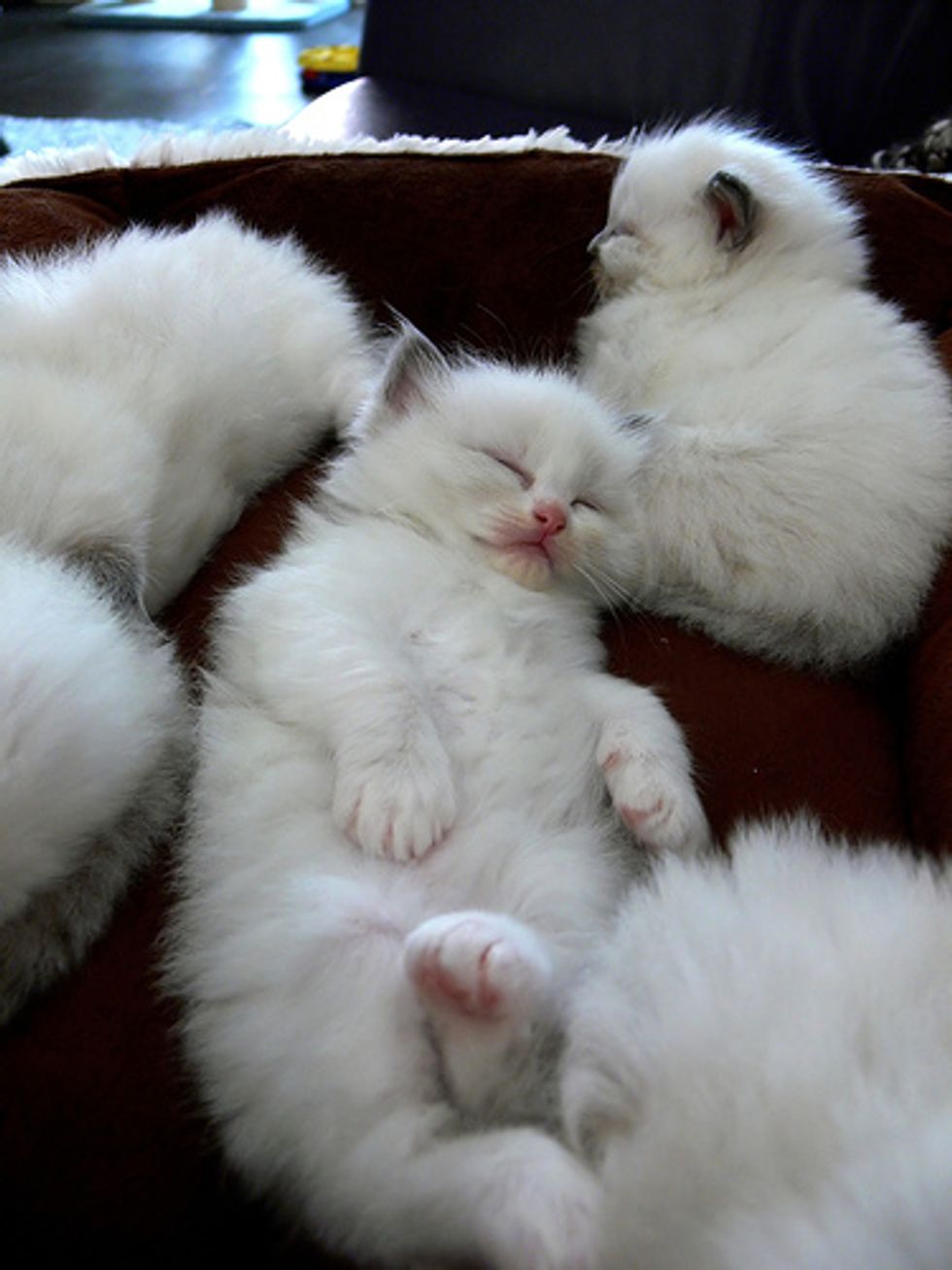Ragdolls are beautiful, lovely, affectionate and gentle cats that have captivated so many people's hearts. They go limp when you pick them up, which is why they are called the Ragdoll. These furry angelic creatures love to take naps. Tom Poes, a super Ragdoll lover from the Netherlands has taken numerous photos of his kittens when they are asleep.