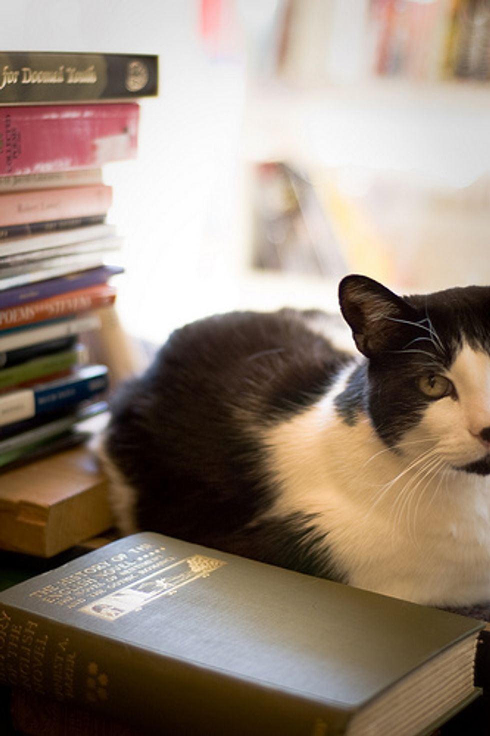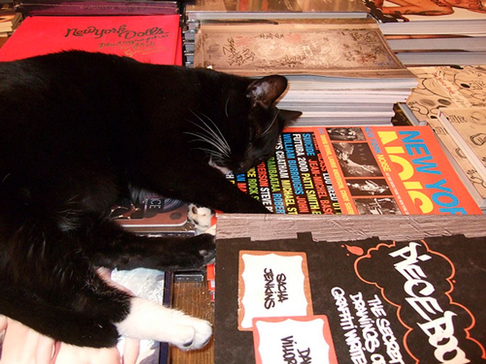 This beautiful tuxedo is from Spoonbill & Sugartown in Brooklyn, New York. The little furry friend is perhaps the most relaxed cat in town. He would sleep on a pile of books for hours without being roused by the visitors.