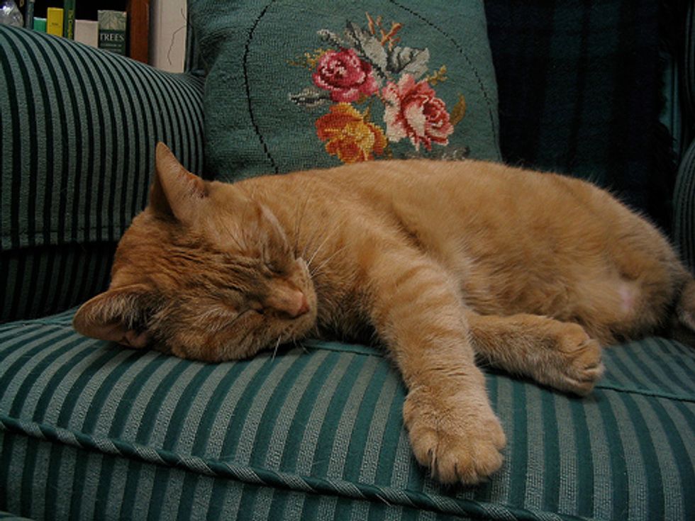 This bookstore cat is sleeping quietly at the Books & Company in Picton, Ontario. Olivia was the former resident cat of the bookstore. The kitty loves lounging around during office hours :).