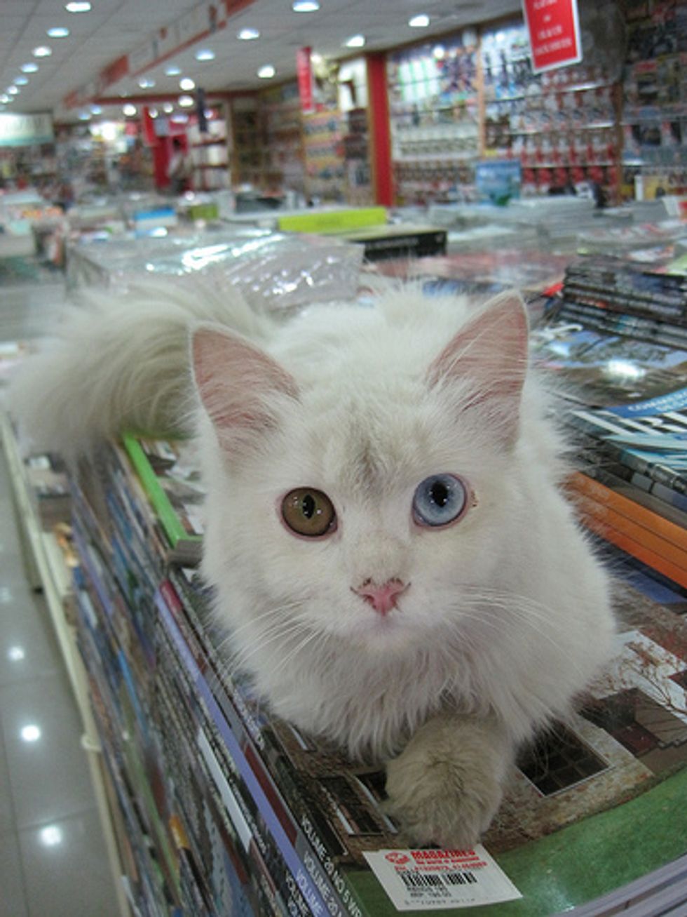 Zola is an one-eyed kitty, the mascot and full-time 4 legged staff of the Iliad Bookshop in North Hollywood, California. Zola was rescued from a wire-mesh hamster cage. She was found having severe infection in his right eye which had to be removed. She also lost a few teeth, but against all odds Zola not only survived, she became affectionate, friendly and loving to everyone in the bookstore.