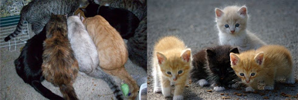 A group of kittens is called a "kindle" and a group of adult cats is called a "clowder."