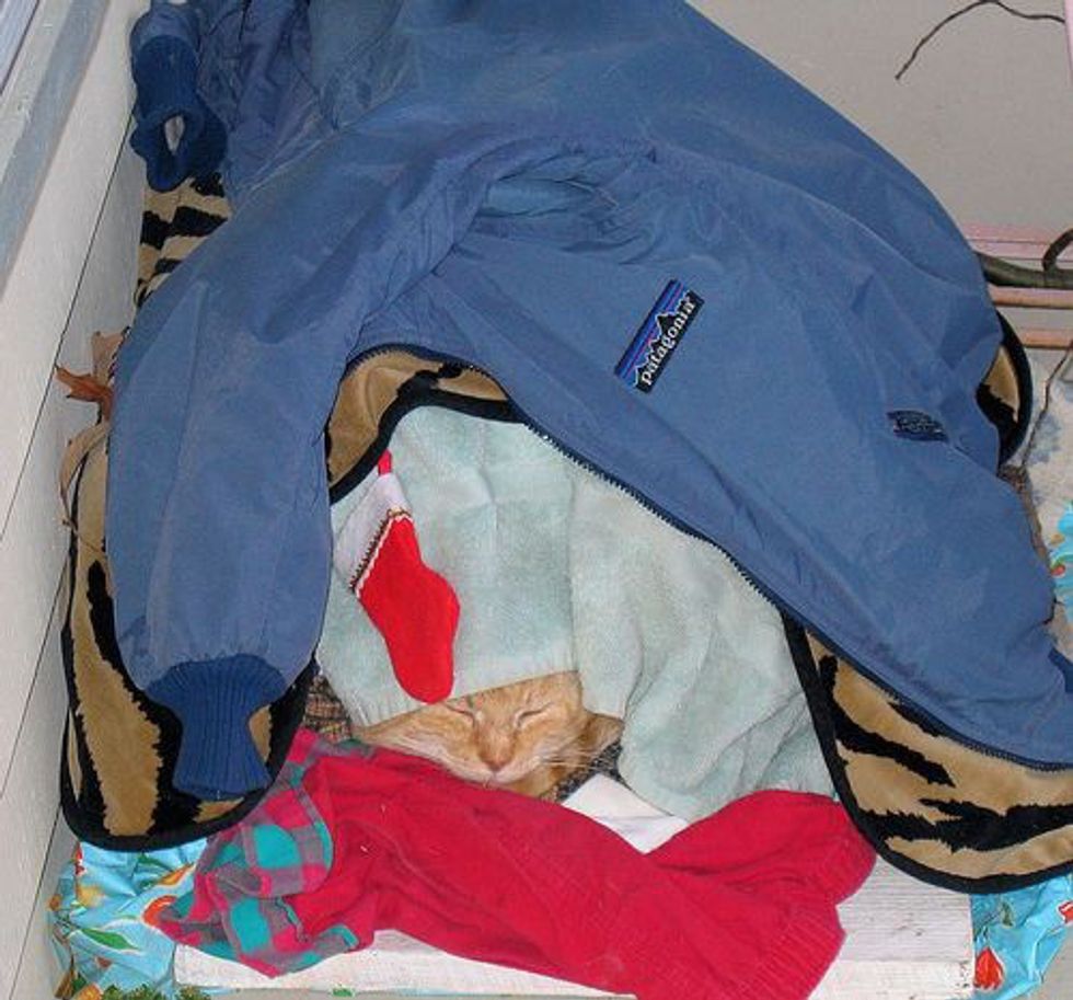 When the cold weather set in I put blanket-lined boxes out for both of them underneath the chairs and covered the chairs with sleeping bags and waterproof material so they could have shelter in the cold. I didn't know if they would use them or not. Sadly, those two cats were in the boxes every night. My heart nearly broke when I realized they had absolutely no where to go.