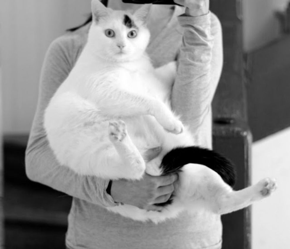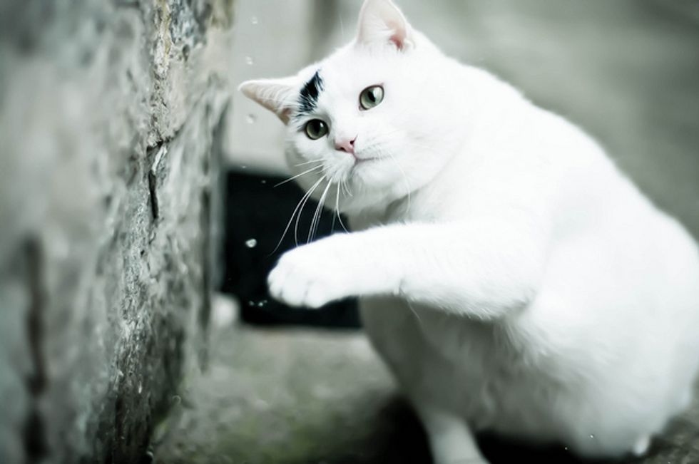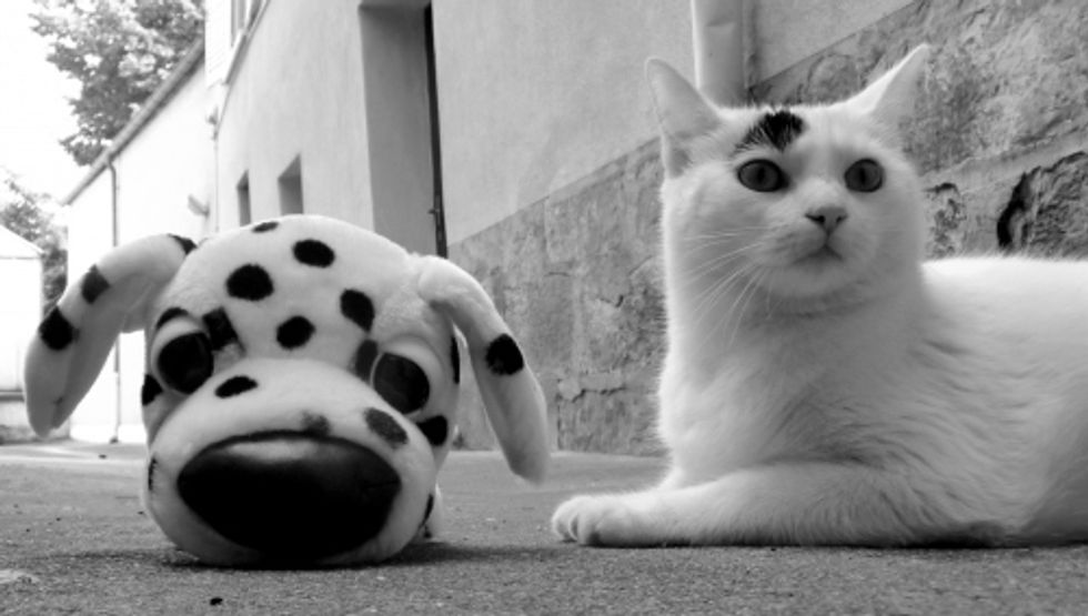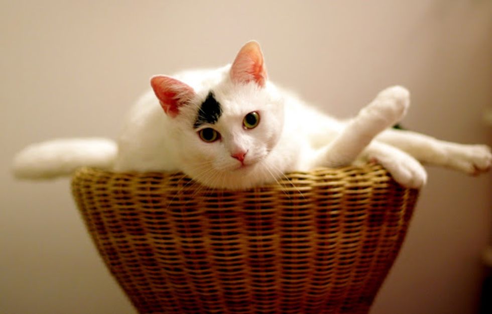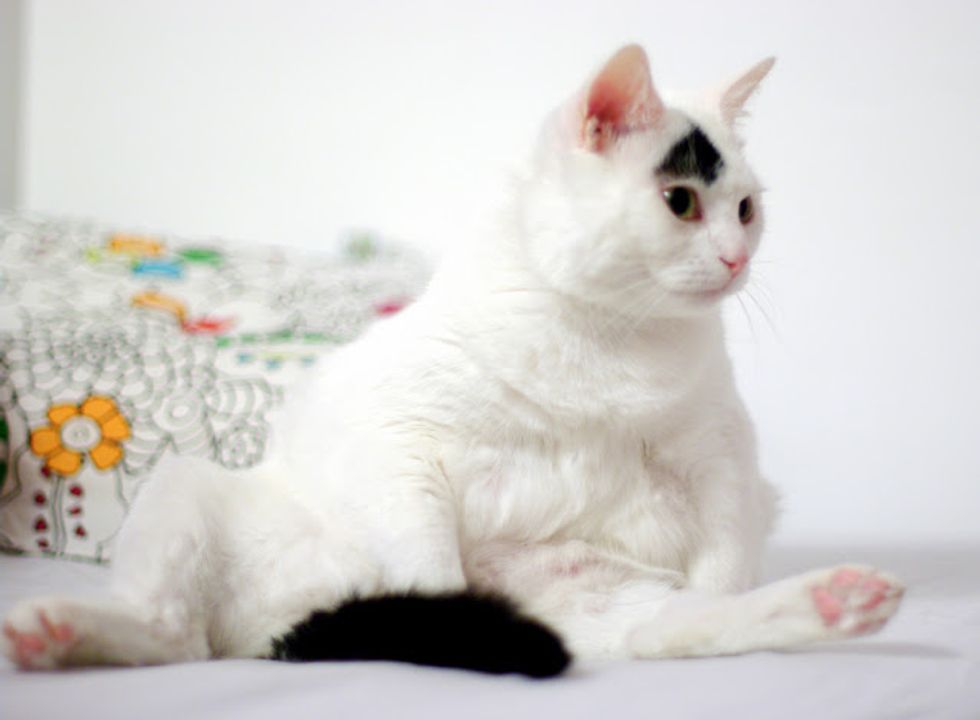 Mimo, an almost white cat with a black spot on his forehead is now 2 years old. When he was a little kitten, he was found abandoned in a garden in France. OoPsy learned about Mimo through a friend who rescued him and decided to bring the little one home with her. Mimo's black smudge has become his signature and makes him a real eye-candy.