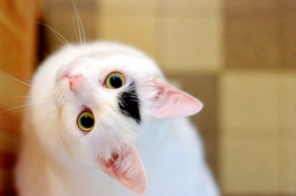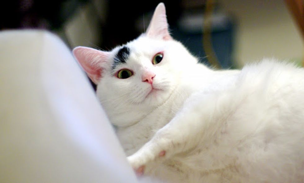 "It was a great surprise to see a white kitten with a black smudge on the forehead," said OoPsy.