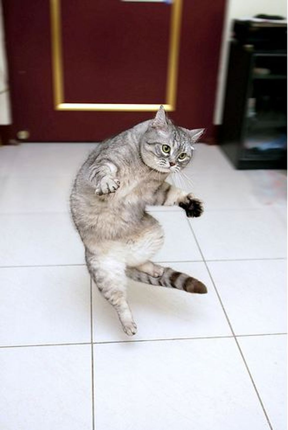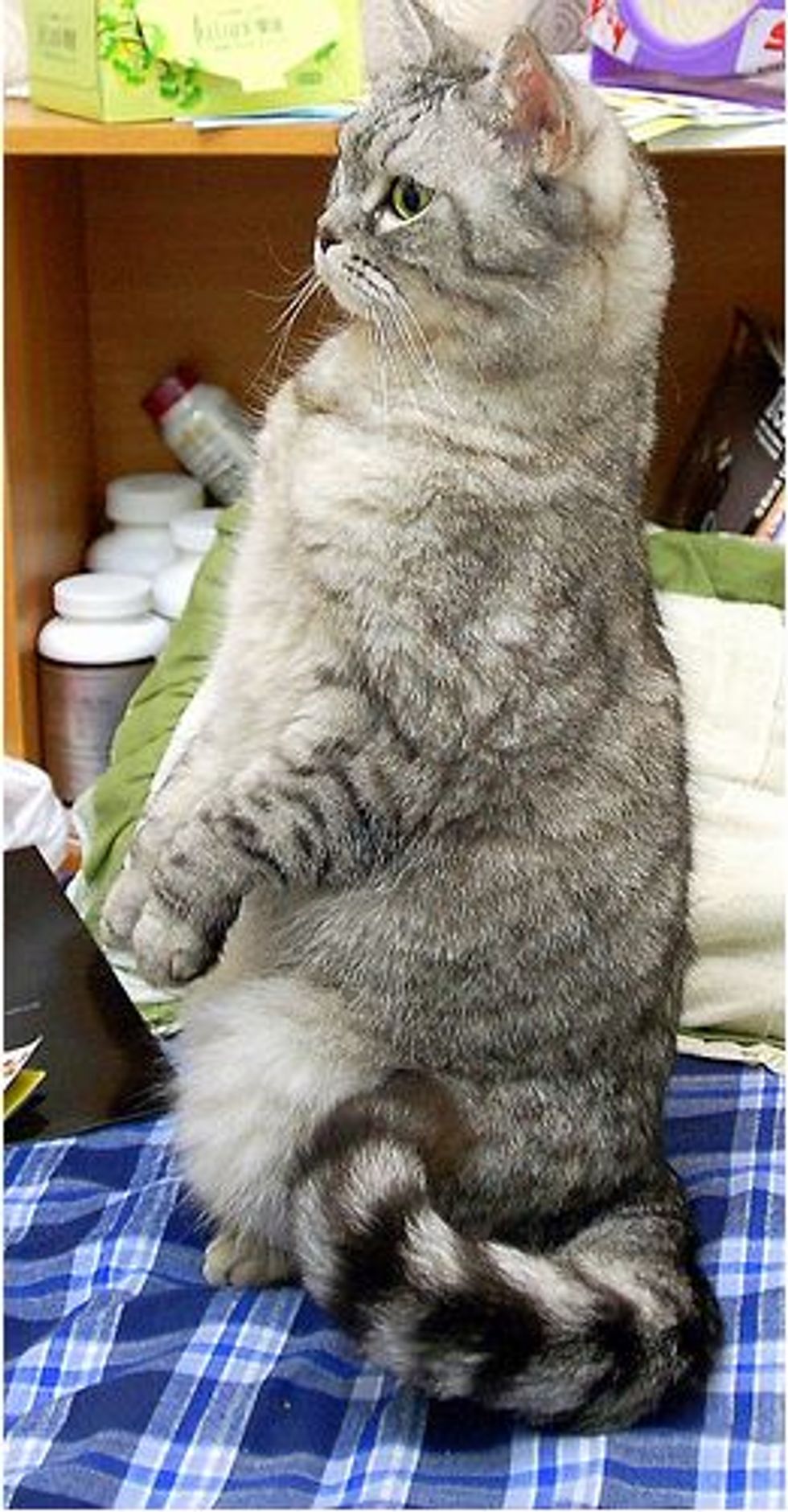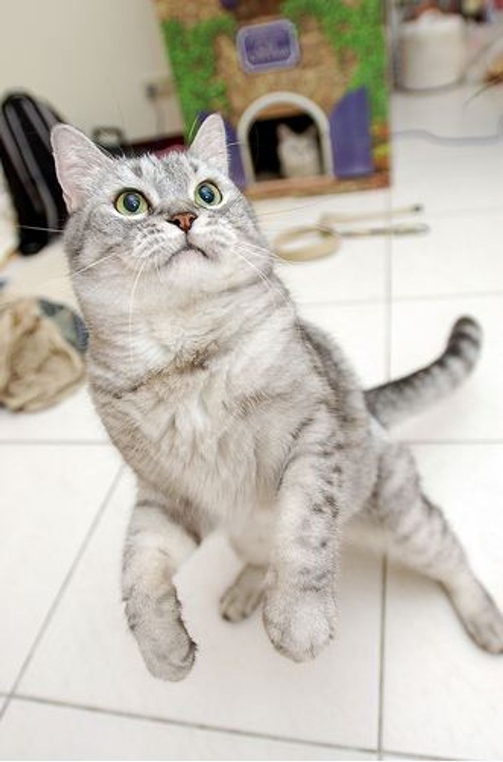 Even though Flik may look stocky, he can jump quite well and is very agile. He likes to jump on the top of the fridge to get to the highest point possible. Unlike many other cats, Flik is not a big fan of kitty grass. His mommy tried to offer him some, but he just turned his head and grimaced.