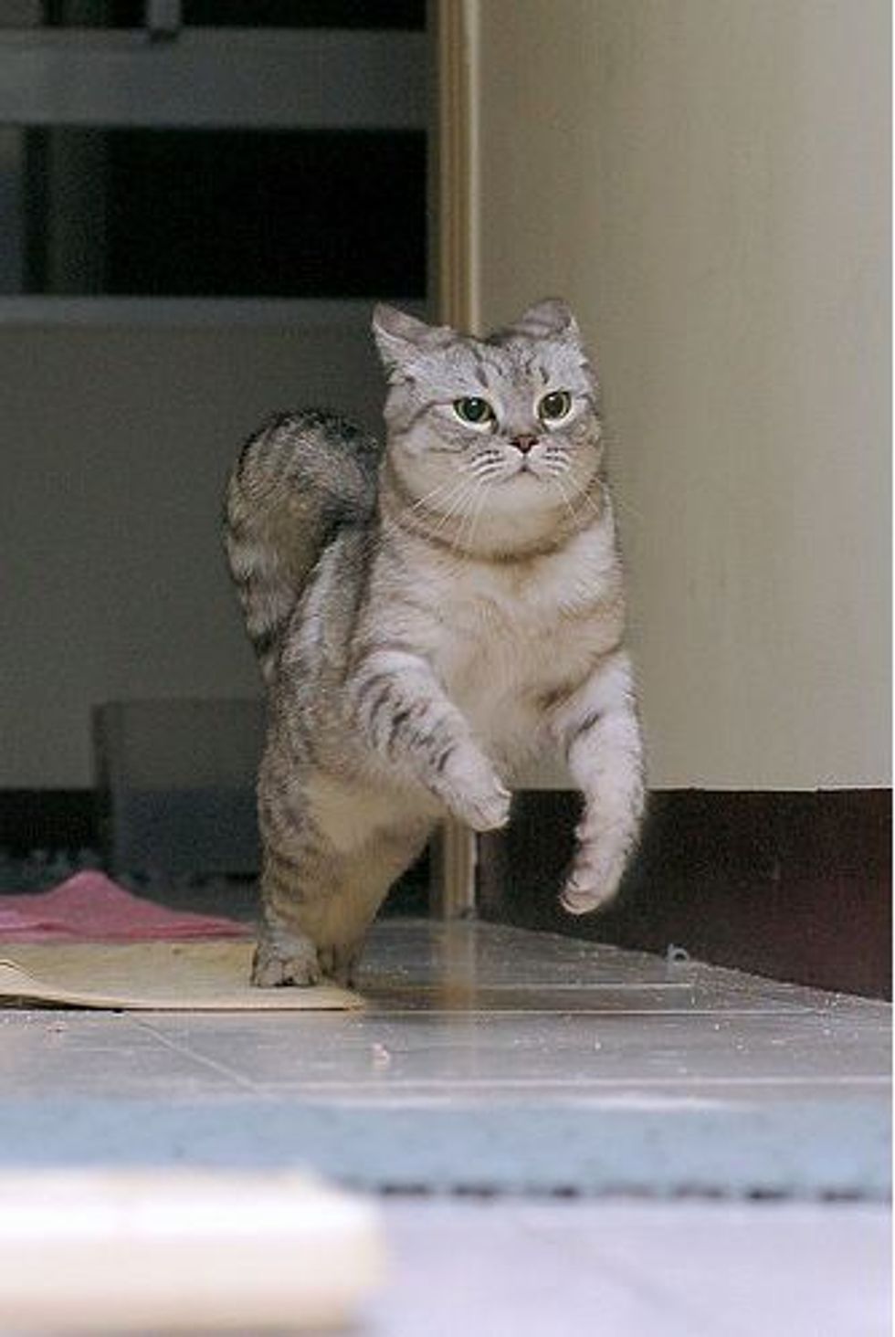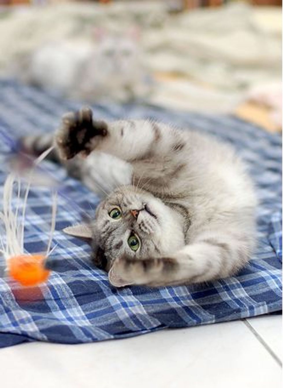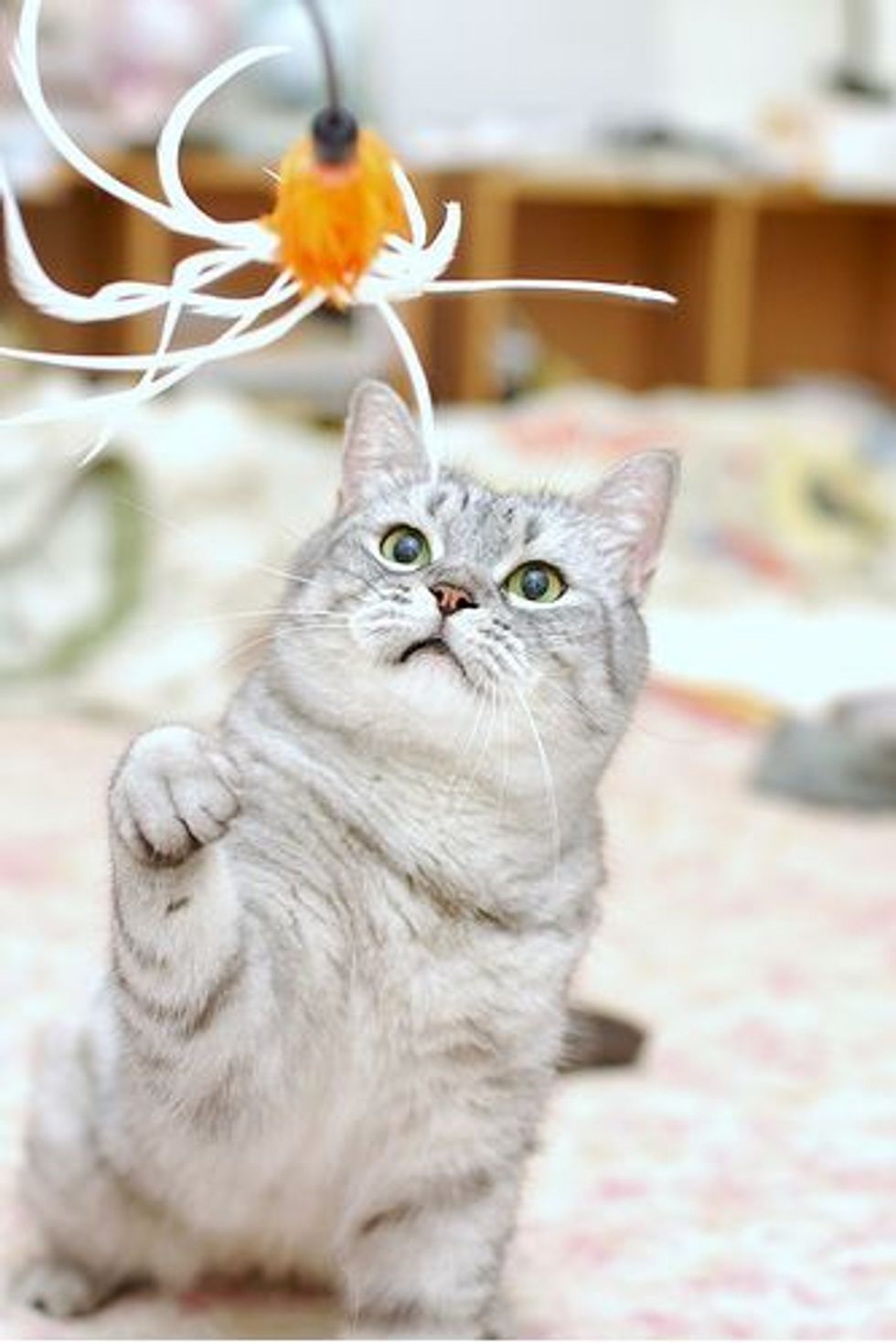 Even though Flik may look stocky, he can jump quite well and is very agile. He likes to jump on the top of the fridge to get to the highest point possible. Unlike many other cats, Flik is not a big fan of kitty grass. His mommy tried to offer him some, but he just turned his head and grimaced.