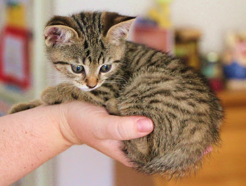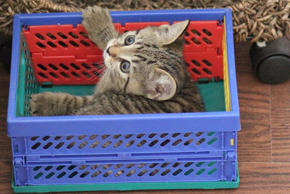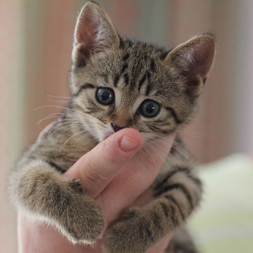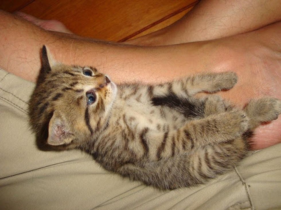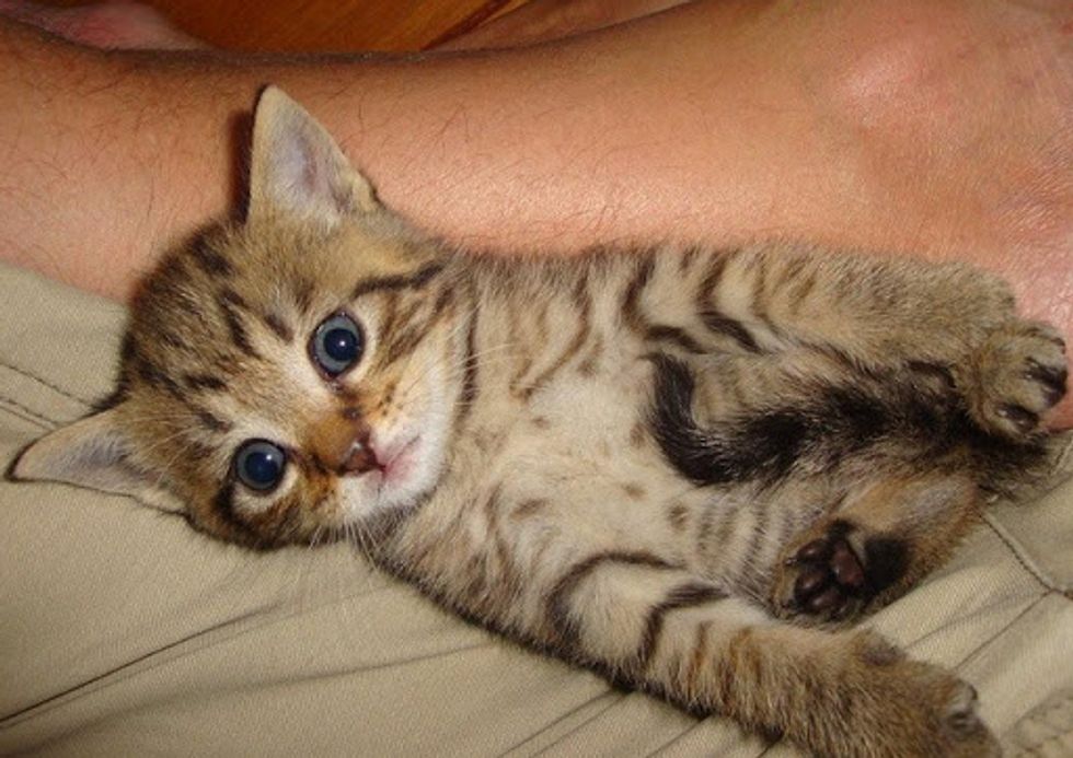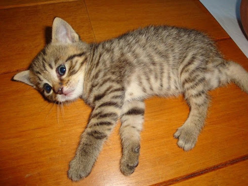 Very soon they found Binky a lovely tabby who aboslutely enjoys life. "If he wants his food, he will get it by giving you the irresistable cute look."