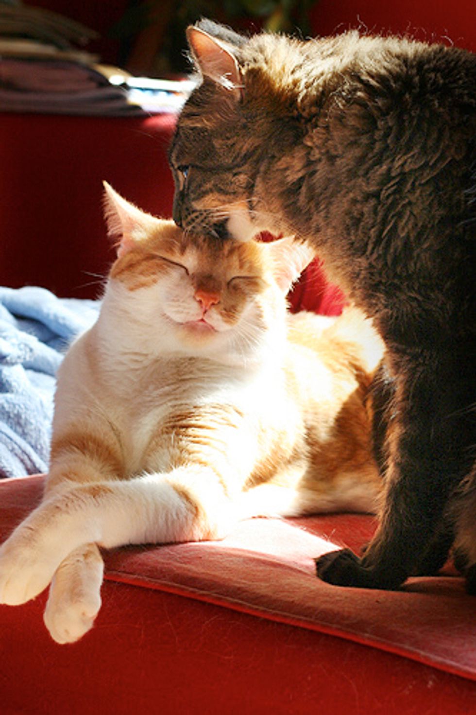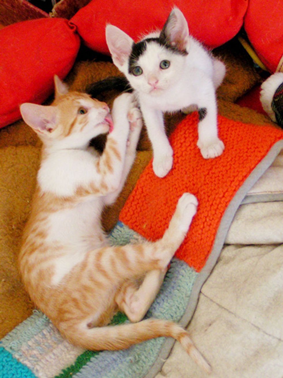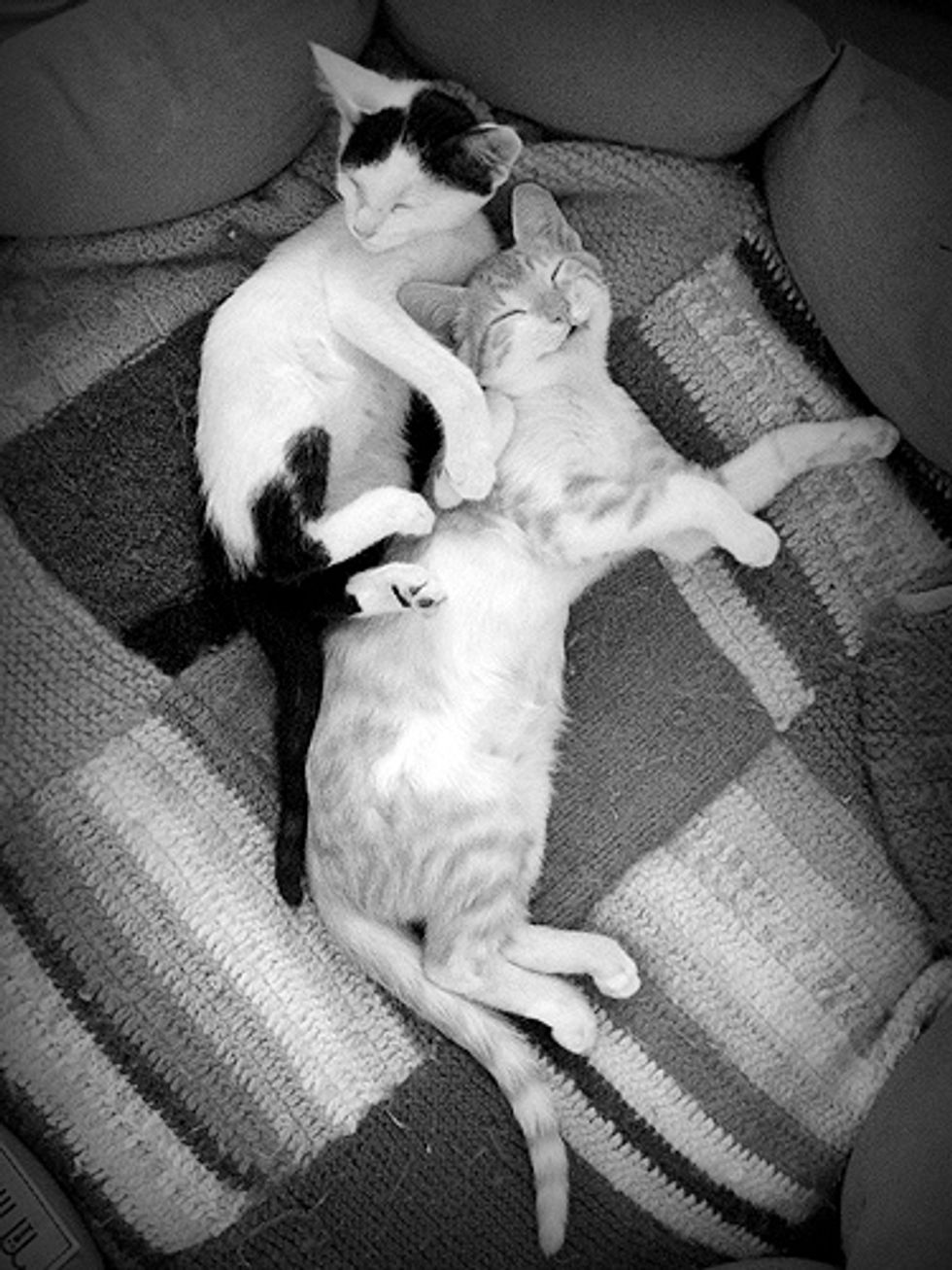 They lived in my bathroom for about one month to slowly adjust to other cats in my home. A wonderful person wanted to adopt them, but I just couldn't let them go. They had bonded with all the cats in the house and they had stolen my heart.