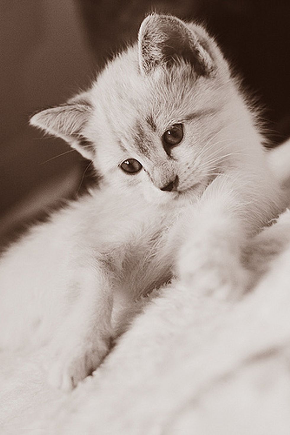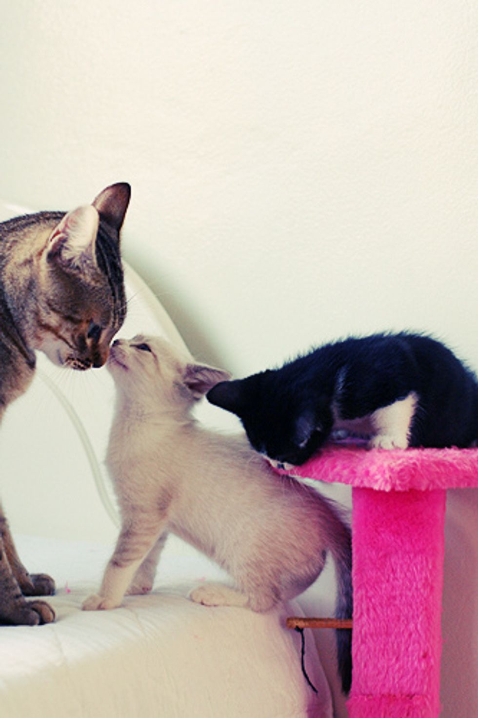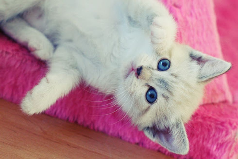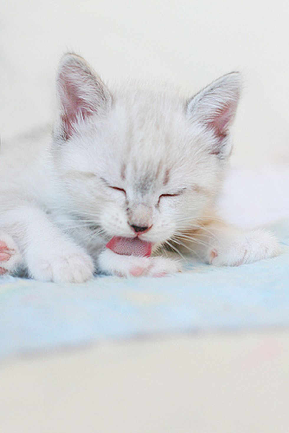 Flor (means Flower in English) was born in a litter of five kittens from a stray cat mama, Madeleine. Madeleine was rescued by Marilia Bavaresco in south Brazil. Since Flor was born, even with closed eyes, she has always been the loudest and the most vocal kitty of all. "If we took her away from her mother, she would start crying like there is no tomorrow," said Marilia.