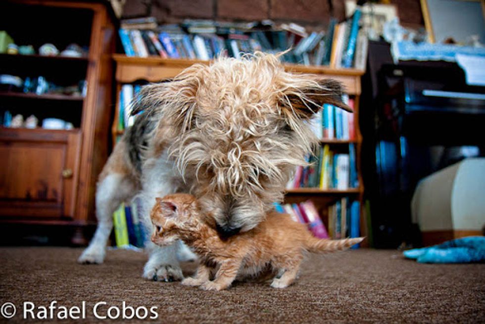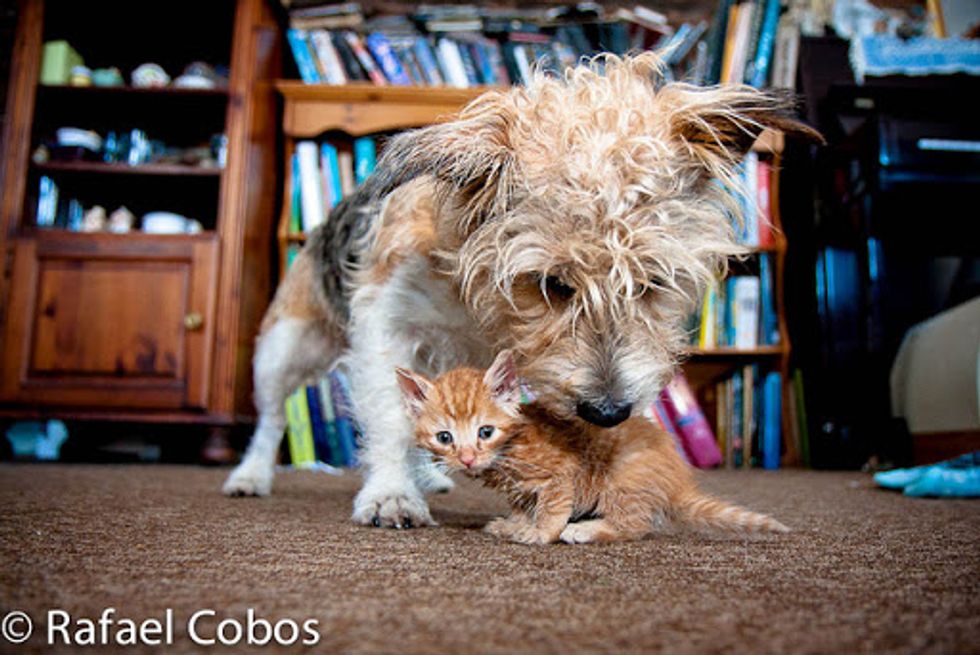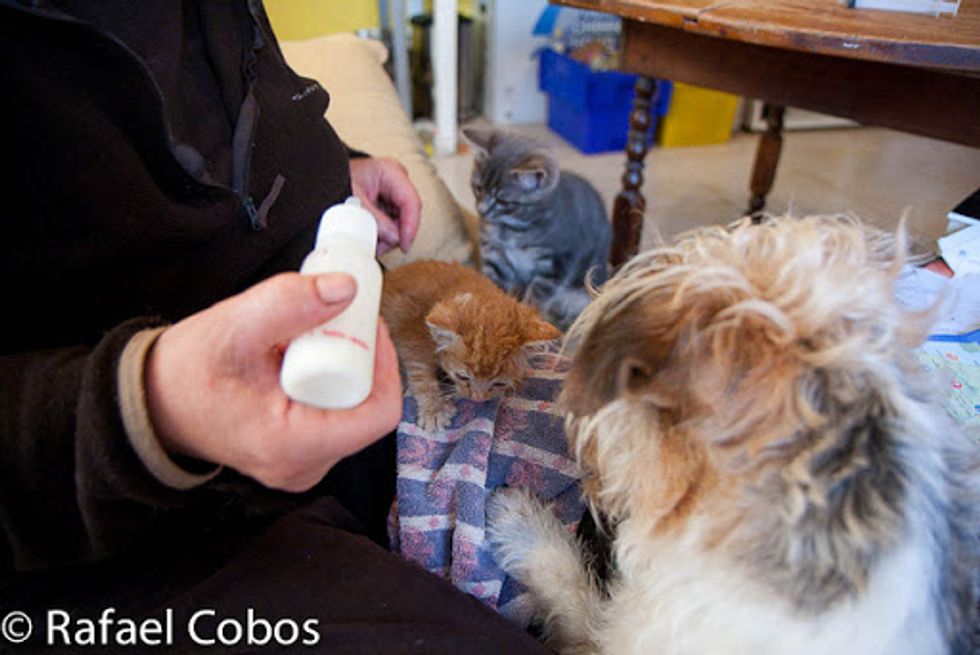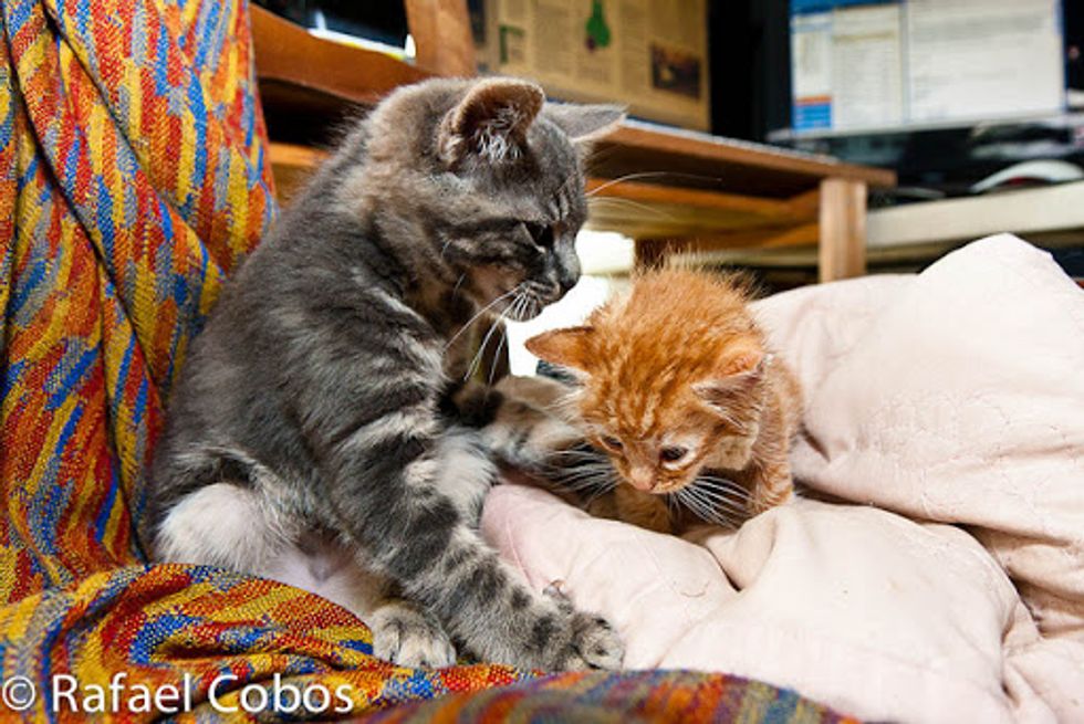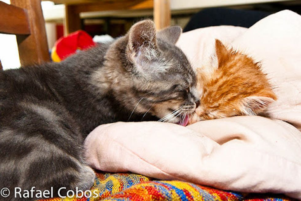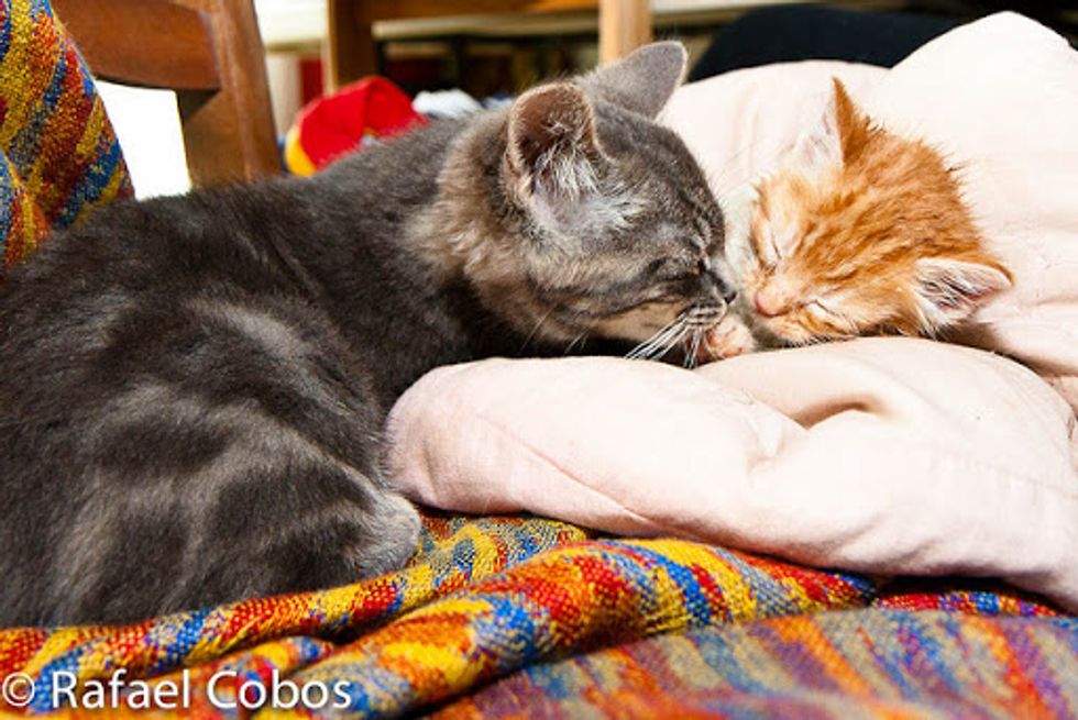 This ginger baby was rescue recently by Rafael Cobos's neighbor at a farm. She was one of the feral kittens that survived in her litter. "Our next door neighbour found her hiding, soaking wet from the rain and suffering mild hypothermia," said Rafael.