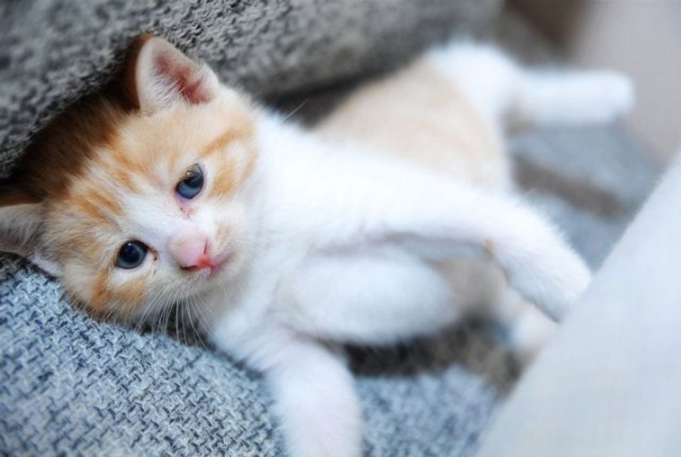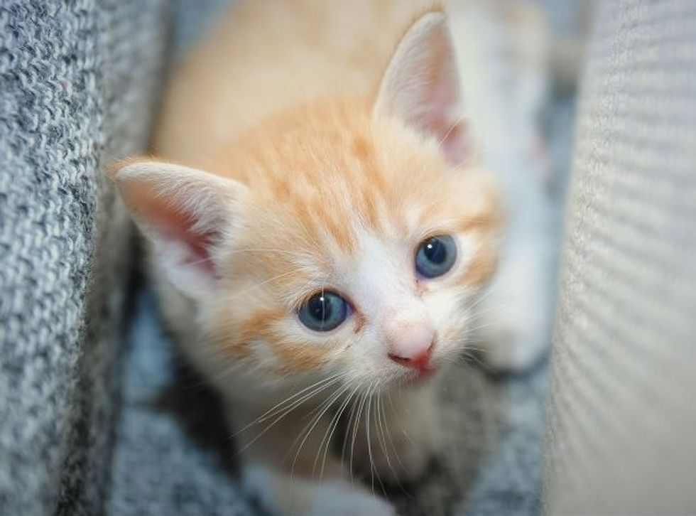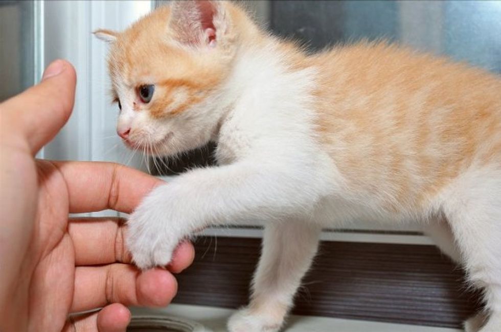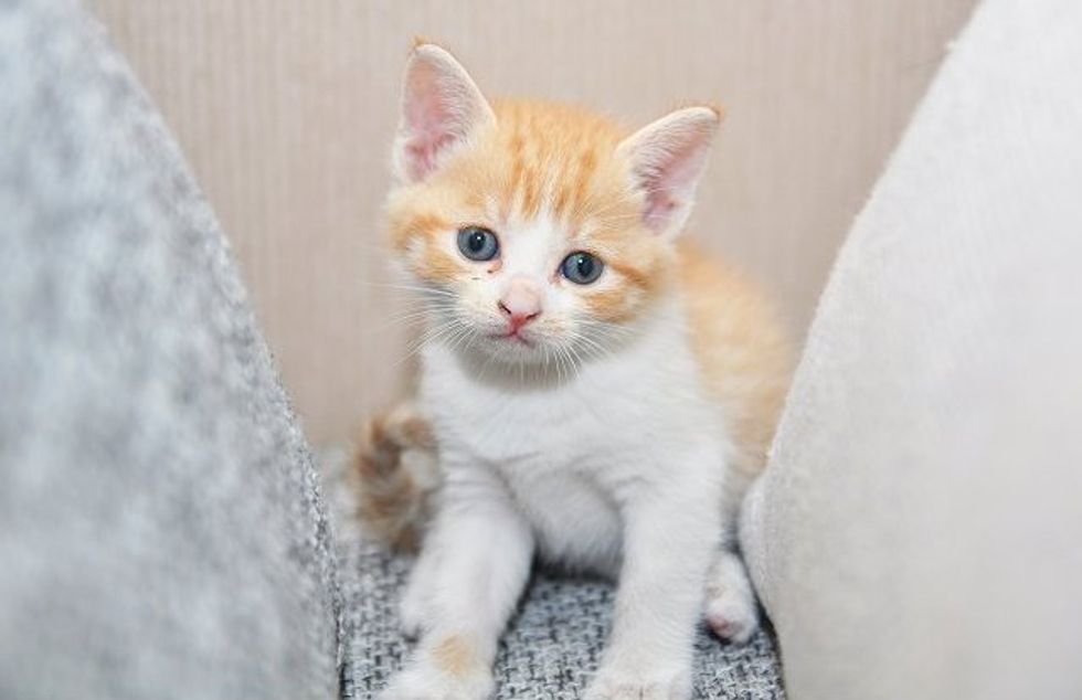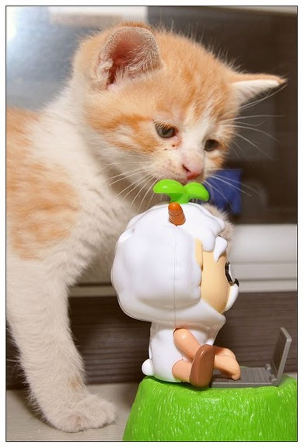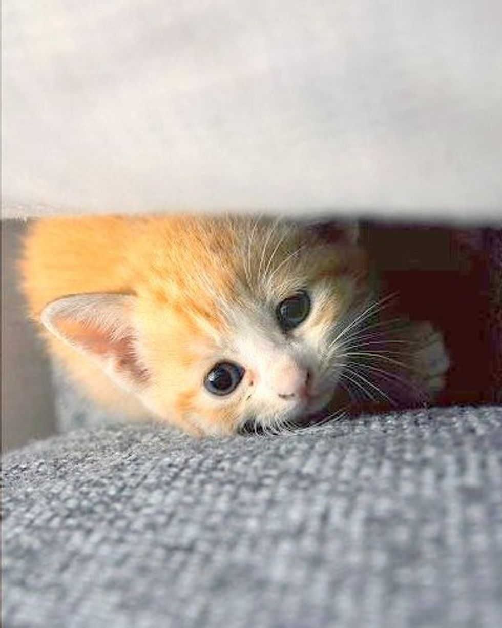 This little kitten was found by a rescue group where Yang volunteers. She was rescued from a family who could not take care of her. She was only a month old at the time.
