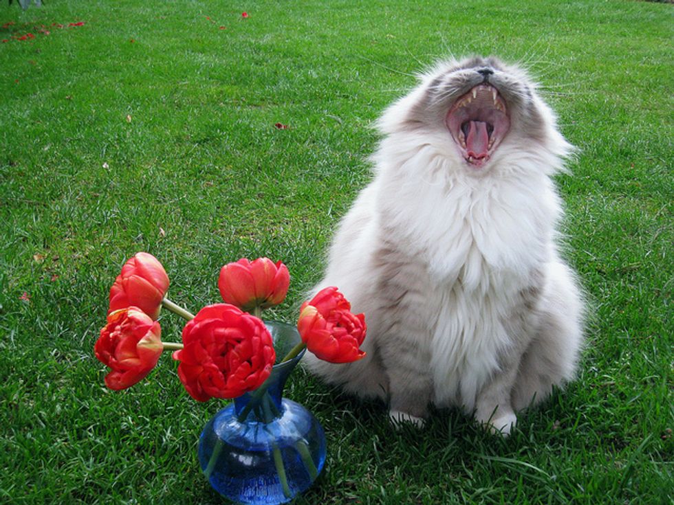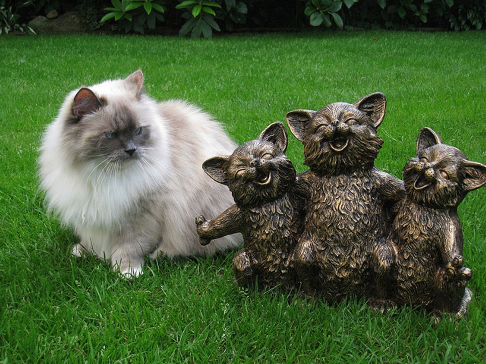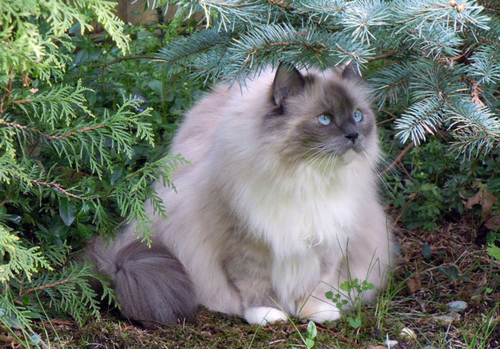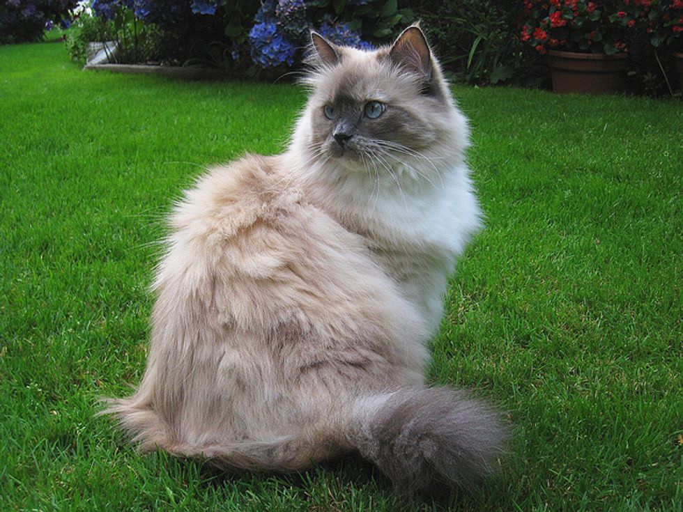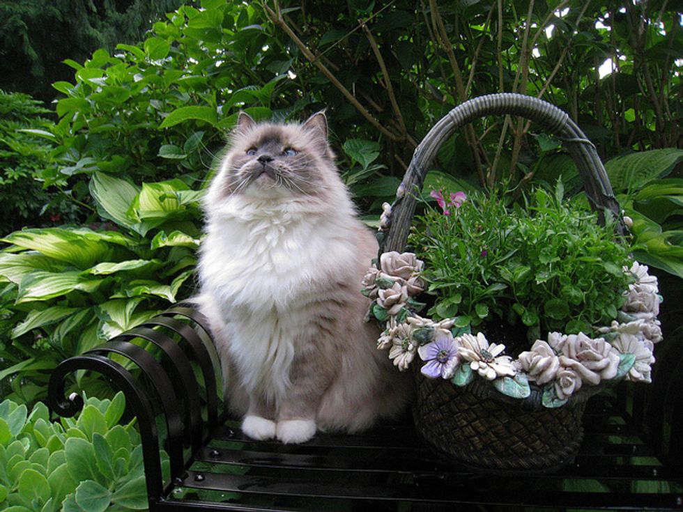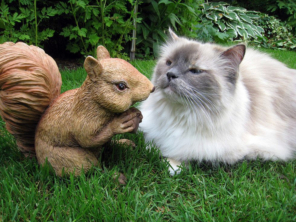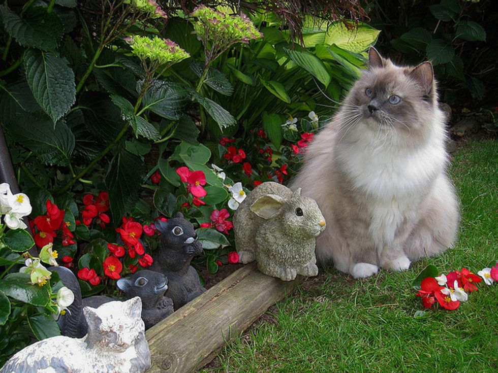 Lacey is now in her sixth year, and has given us so much joy and happy times over the years. She loves to play in the backyard with me. There are lots to interest her there, like squirrels coming by, birds of course in the trees, and bugs. She loves to jump up at any flying bug. She'll chase anything, a long plant stem, a string, a branch off of a shrub... She goes crazy chasing things and will jump high into the air at times after them. She'll catch the string or rope I sometimes use for her to chase, and when she catches it, she runs away, dragging it behind her. It's so funny.