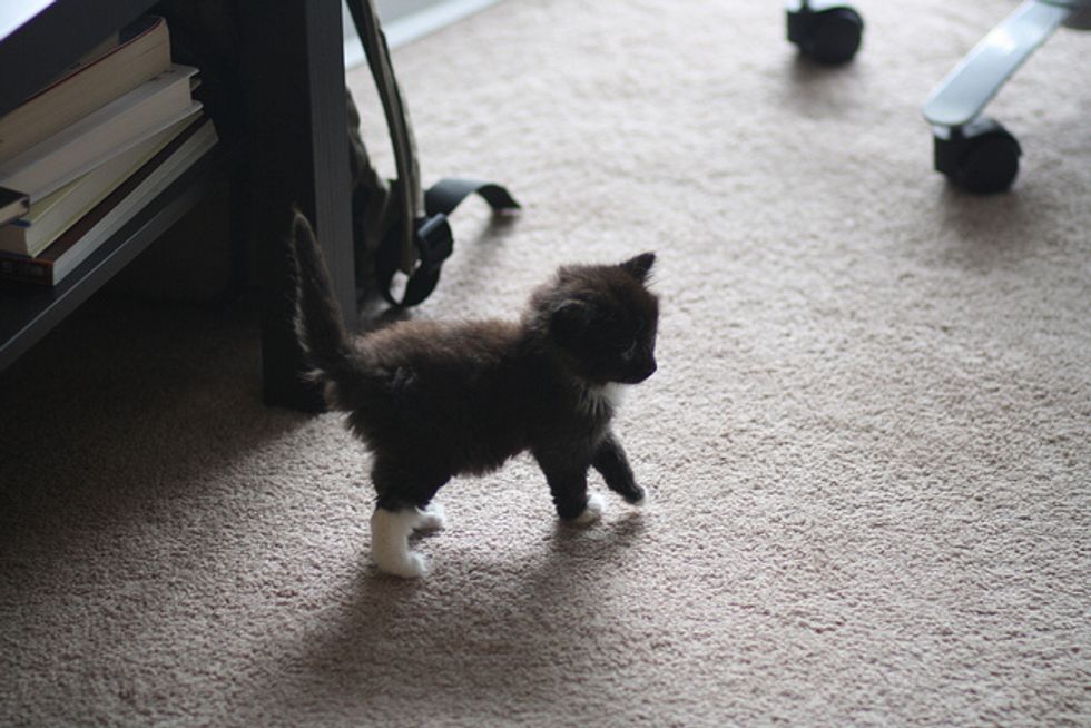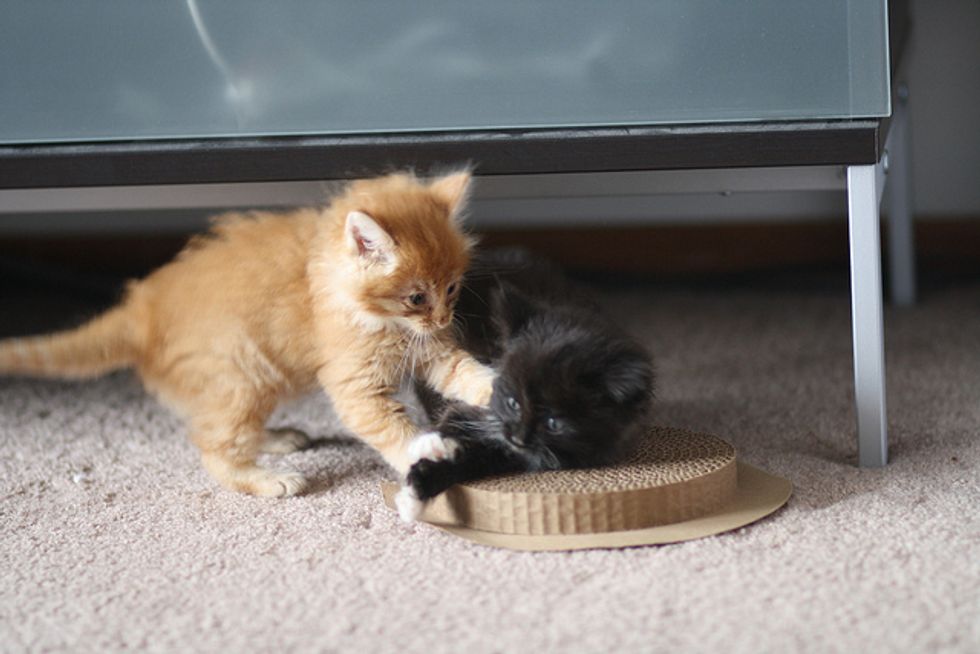 Mr. Franklin and Miss Butter just came to their foster home not too long ago. They seem to be adjusting very well in their new place and have already turned their foster home into their own play ground. These two fluffy furballs are so incredibly adorable that it's hard not to squeak when you see them. Thanks to Jason Toff, the kittens' foster dad, they are doing well and getting ready to find their forever loving home.