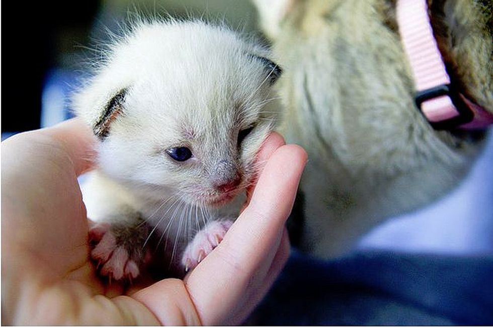Stacey, a volunteer from No Paw Left Behind, brought two pregnant rescued cat mamas into her foster home. Very soon they gave birth to 12 kittens. One of them was an "oddball" because he was the only white kitten out of the bunch.