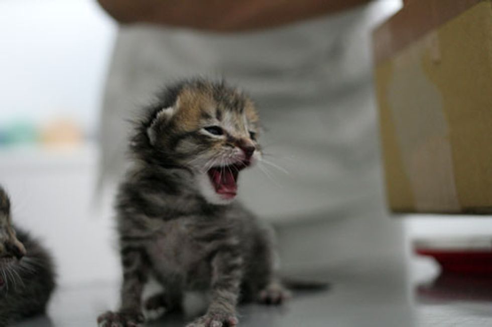 "The box was so tall that there was no way the kittens could escape. It was covered with a lid. One of the kittens had a closed eye, so I took them to the vet right away. The doctor said the kittens were about 7 to 10 days old. He cleaned the little one's eye, so she could finally open it."