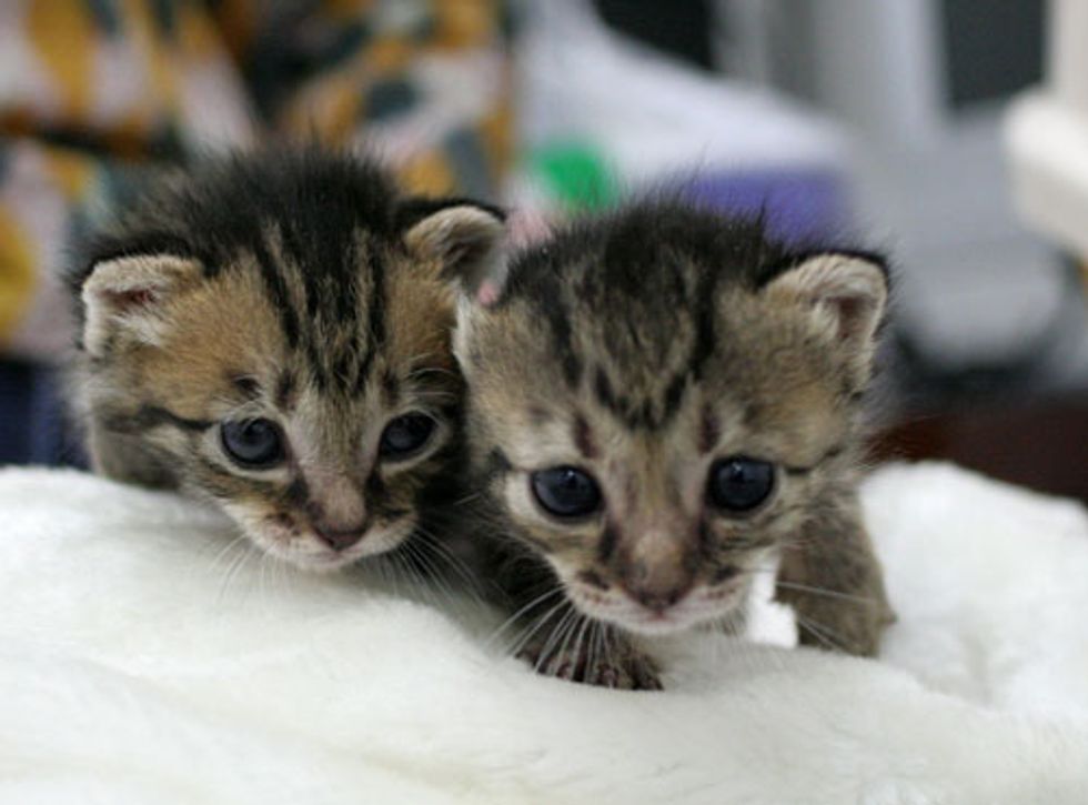 The cries got louder as she approached it. When she opened the box, there were two tiny little kittens whose eyes just recently opened squirming around in the box. Right away Chobi decided to take the little kittens home with her.
