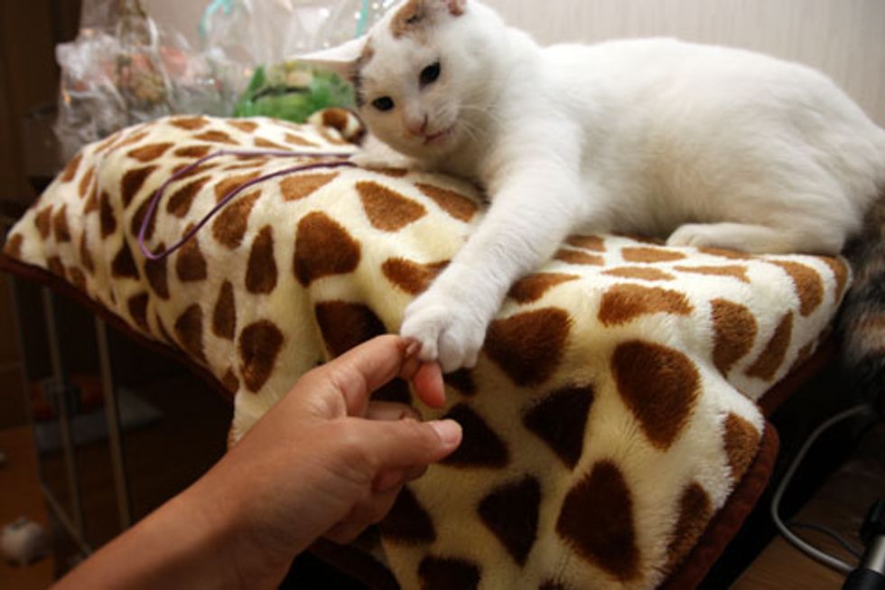 A few days later, she allowed her foster mom to pet her while she was in the bed. Though Nanako insisted to stay in her bed, she started loosening up a bit by allowing her foster mom to hold her paws and rub her face.