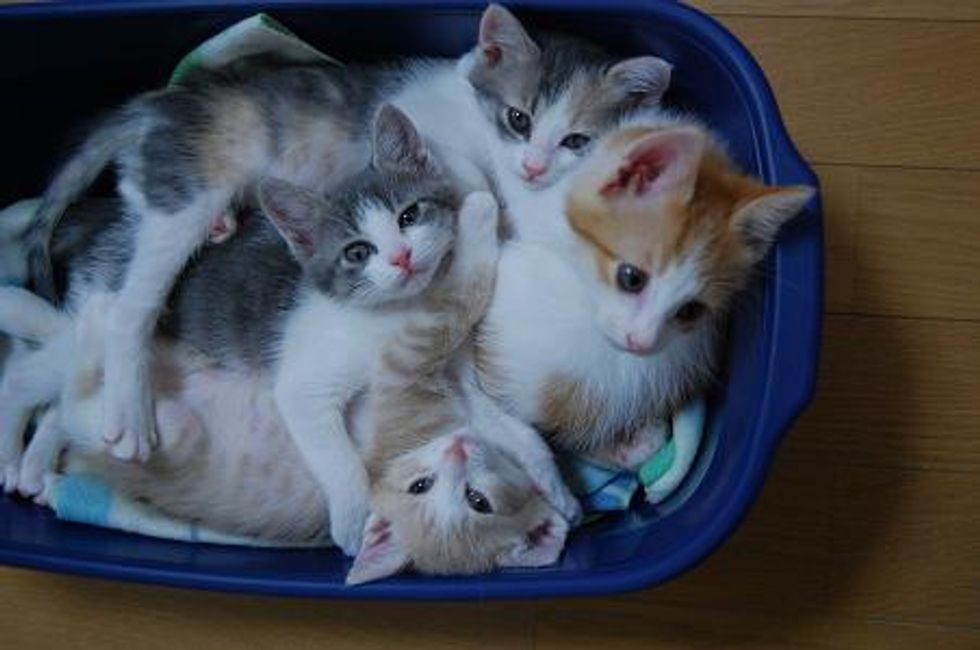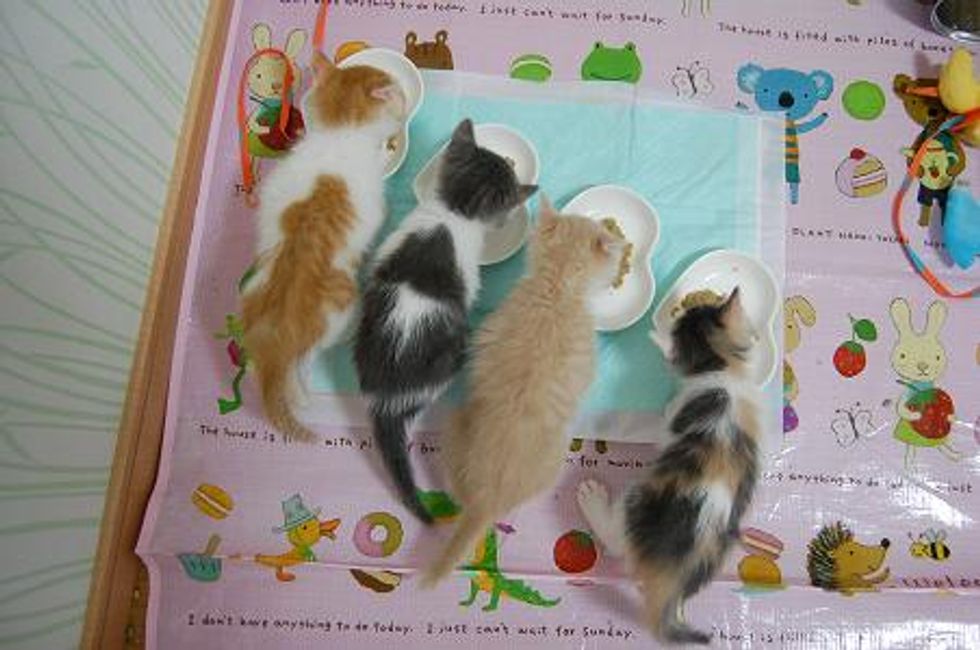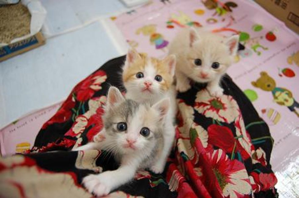 All the kittens were staying with Chinobi Umeharu, a foster parent from Japan, until they found a place that they could call home.