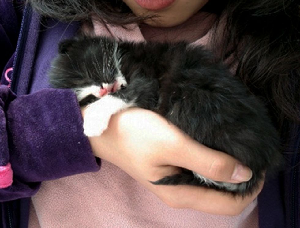 Zhuzhu, a little tuxedo baby was once homeless, but luckily she was found by a kind person. This precious little jem is nothing but sweetness and affection. She was very tiny but was so curious and playful. In no time, she became the little mischief maker in the house. If you pick her up, she would fall asleep in your hands so adorably.