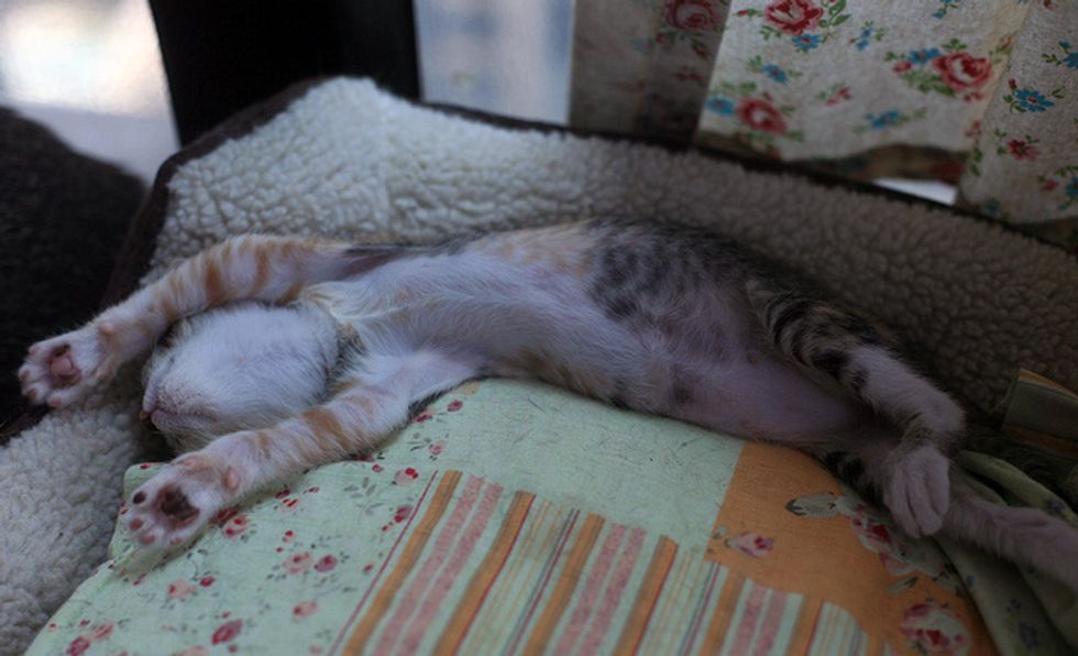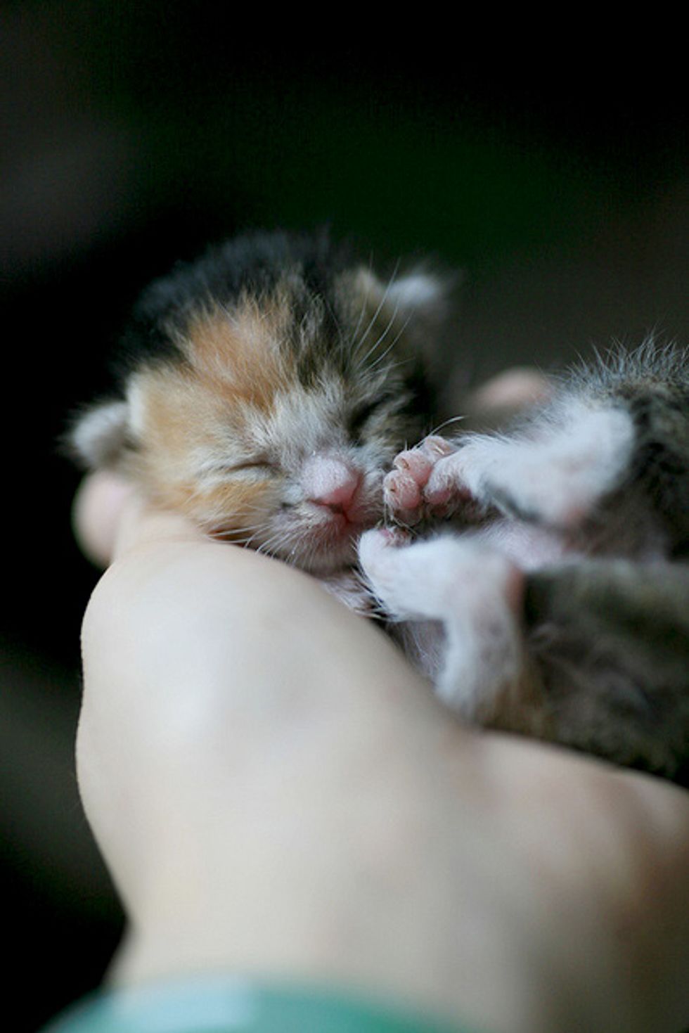 Little kitten was found on the streets. Her eyes were not even open. The person who took her home had no idea how to feed the little poor thing. She came to Tracy who just adopted three more new members to her big furry family.