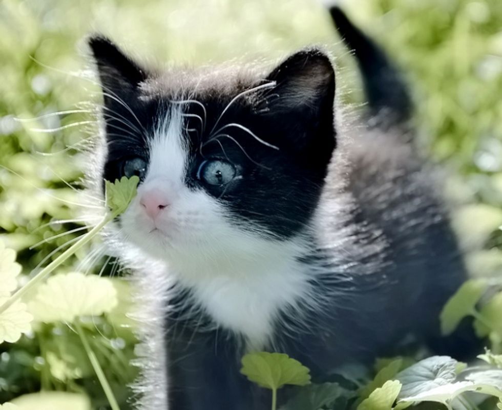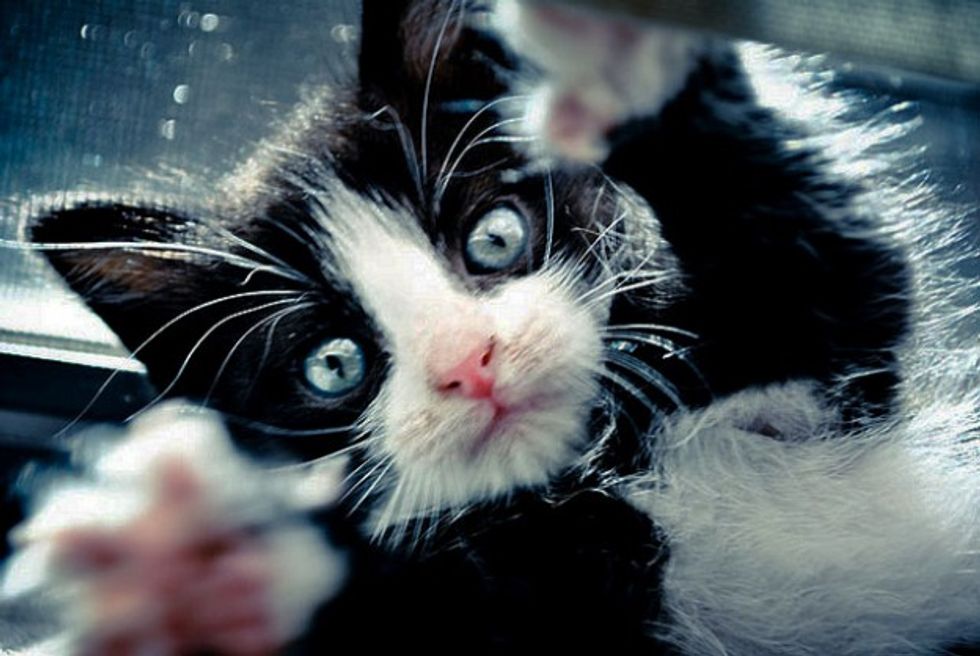 We were hanging out at a friend's house in the backyard. They have a large, yet gentle, older black lab named Sebastian. Unfortunately, they had also been having a mole problem and Sebastian was helping to catch them. In the middle of our conversations, Sebastian came running up to us carrying something in his mouth. We thought it was probably another mole but upon closer inspection we realized it was a tiny kitten, probably no more than a few weeks old. So he gently placed it on the ground and we all gathered around. The kitten was not hurt at all, but it was nice and soggy with doggy drool and mewing like crazy. A friend went searching the perimeter of the yard to see if we could find any other kittens or the mother but there was nothing to be found so we weren't sure where the kitten came from.