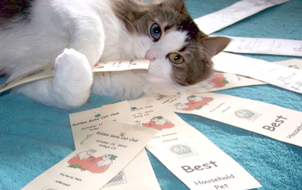 She has grown to be very tolerant and unflappable in a wide range of situations. I don't think she has a mean bone in her body. That personality, I believe, will enable her to be a therapy cat. People seem to love her uniqueness and I enjoy talking to others about how she had a rough start to life and grew to be the cat she is today. I think she could be an excellent poster cat for street kitties! We have a very close relationship. I was the first person to touch her, feed her, play with her, and cuddle with her. The day I found her was the one year rainbow bridge anniversary for my cat Tiger who had to be put down due to heart failure. I had actually forgotten about it amidst all the hustle and bustle and when I realized it months later it gave me I couldn't believe it. I really think we were meant to find each other.