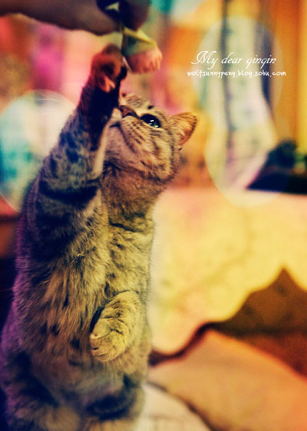 "This kitty is our fourth cat that my mother picked up from the street. Her name is Qinqin," said Lang.
