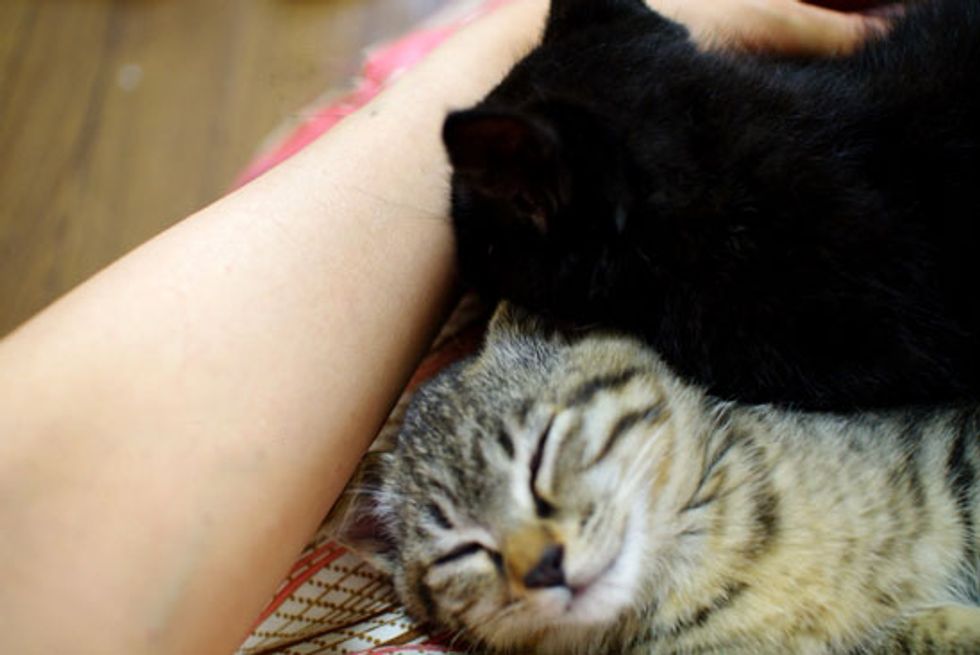 They named them Kuromi-chan (black, F) and Mao-kun (tabby, M) and slowly the two started to come out of their shell.
