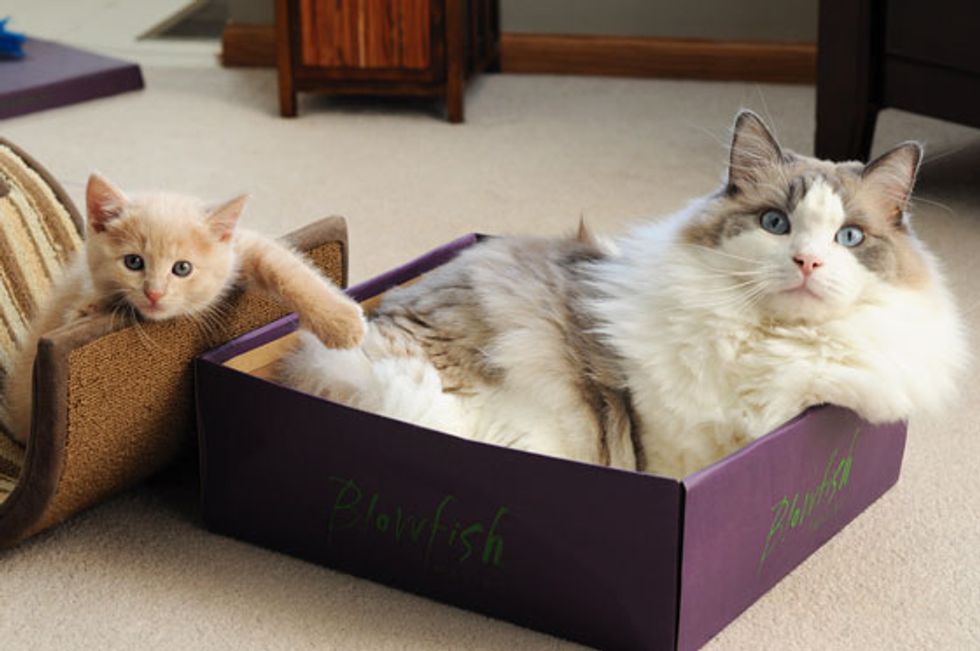 Photos courtesy of Lindsey (flickr, Lindsey’s kitty blog). Finn looks up to Dexter like a son to a father: