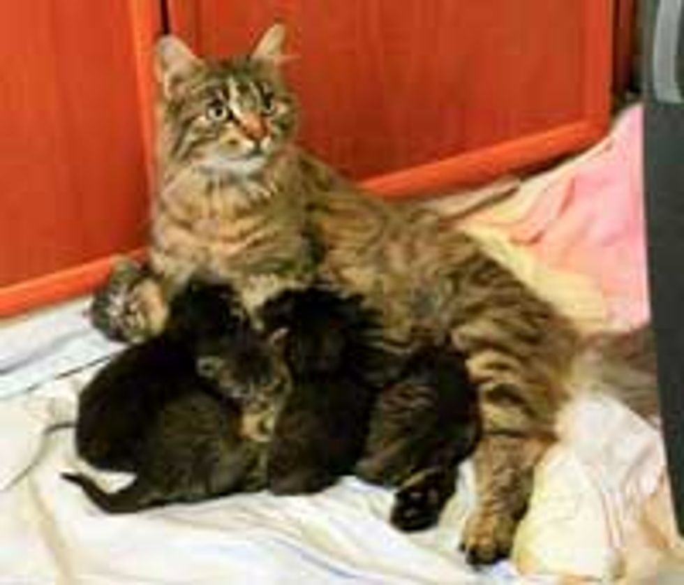 A fluffy cat turned up on a family's door step early this May. She was demanding for food, but what the the family didn't know was that the next time she returned, she came back with seven kittens.