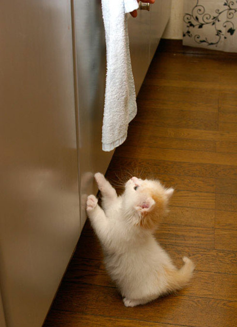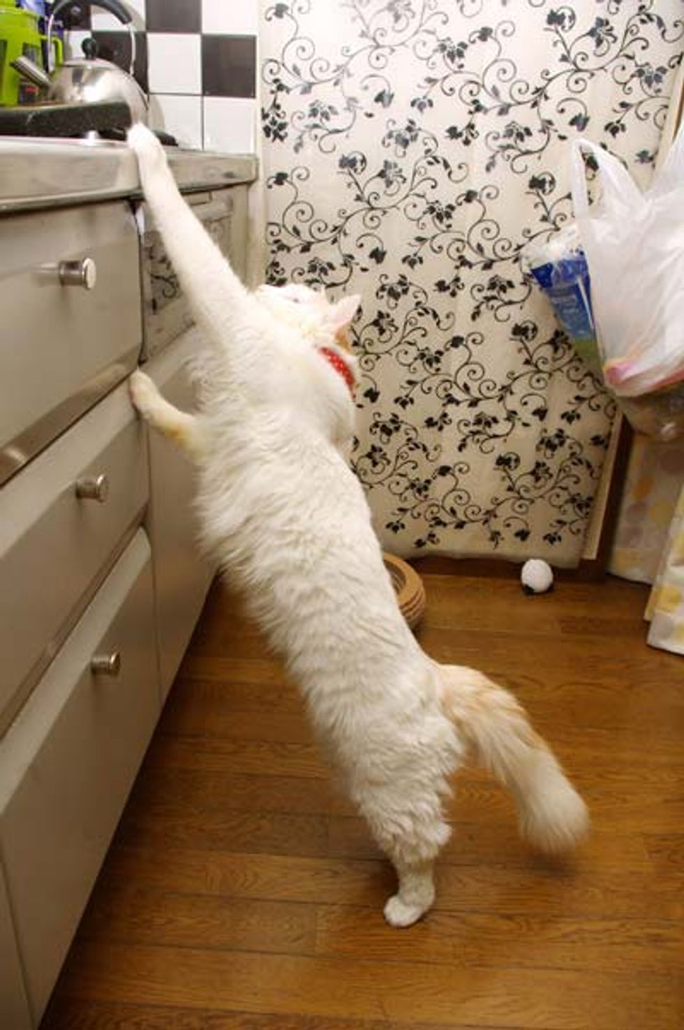 In just 5 months, Okaki has fluffed up into a beautiful cat who can easily reach the top of the counter: