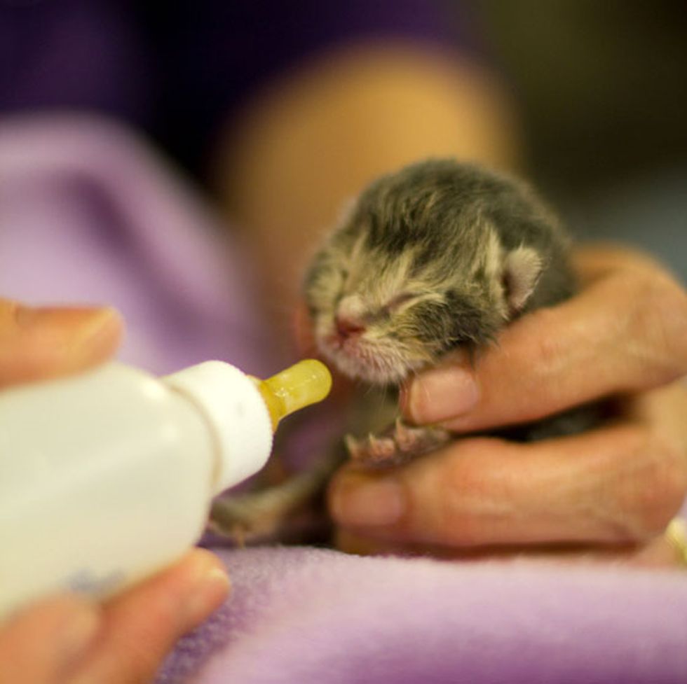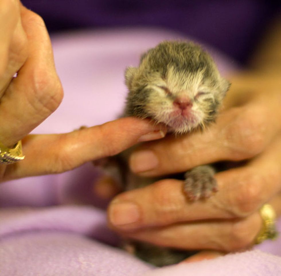 Teeny tiny kitten was given a bottle of warm kitty formula and lots of love and TLC. Little orphan kitten was found by Save A Pet and brought to foster care when she was only a few days old.