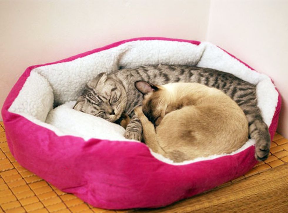 It was love at first sight when these two furry kitties met. Not only did they become great friends, they are never out of each other's sight. They eat, play, and sleep together. Whenever they snuggle up for a nap, they cuddle in a puddle. It's as sweet as it can be.