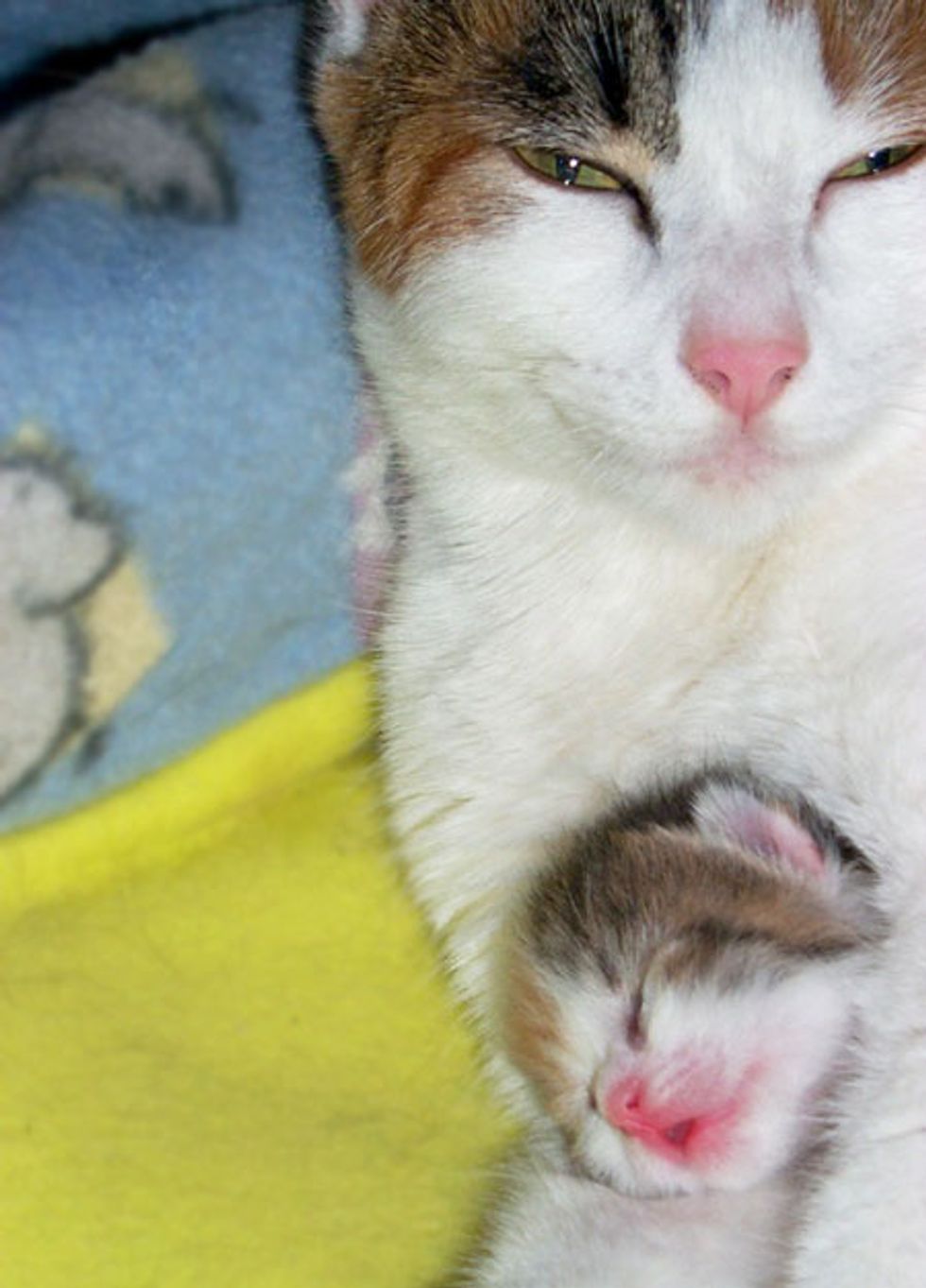 Adorable cat mama Sugar was rescued along with her litter of four kittens. She looked after her babies tirelessly and never left an inch away from them until they grew bigger and stronger. Sugar and Ginger had a special bond ever since the little one came to this world.