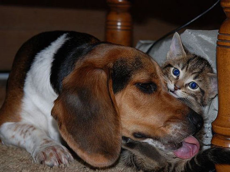 Franklin the tabby kitty was adopted by a dog named Molly since the day they met. They have been together inseparably ever since.