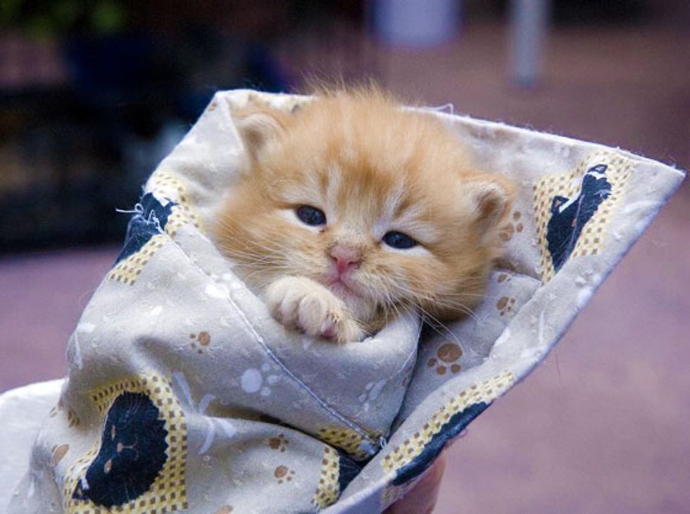 A tiny bundle of joy, Humza, named after the man who found him all alone in his Greenpoint yard, was taken in and homed by the Empty Cage Collective in Brooklyn, New York.