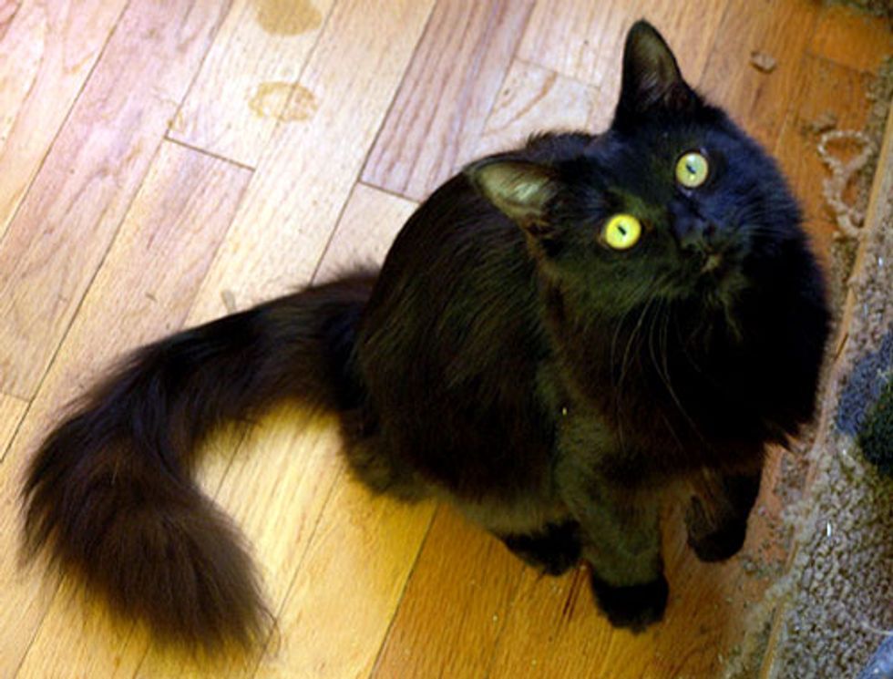 Photos by Jess (flickr: Metalsmitten). Audrey became part of the family that took her in and now has all grown up into a beautiful fluffy kitty: