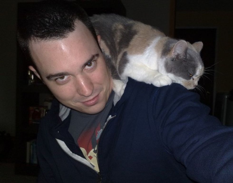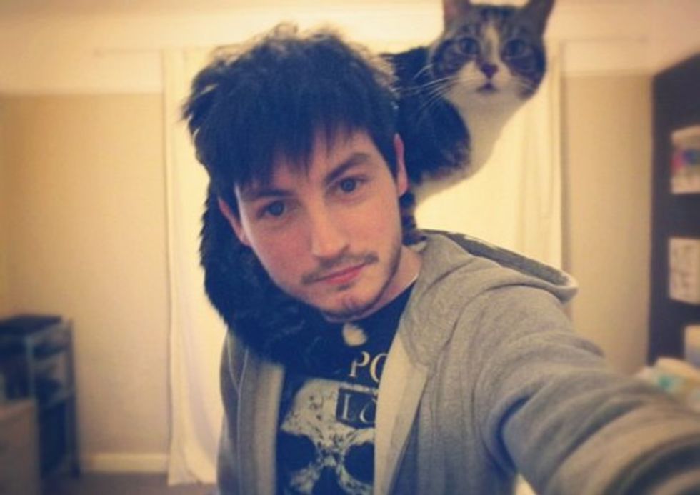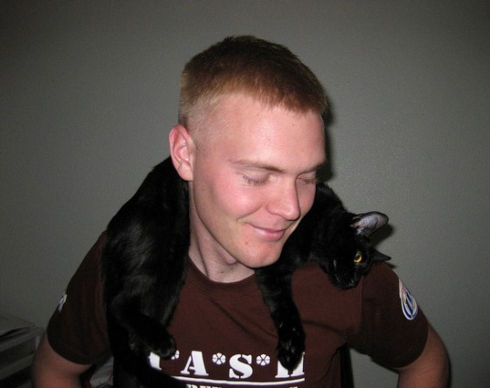 These men carry their shoulder cats with pride and honor. "Every man should have a mighty kitty."