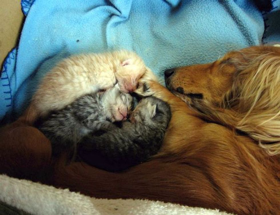 Tiny orphan kittens found an unusual mother, a dog with poor vision, but a big heart and tons of motherly love to supply.