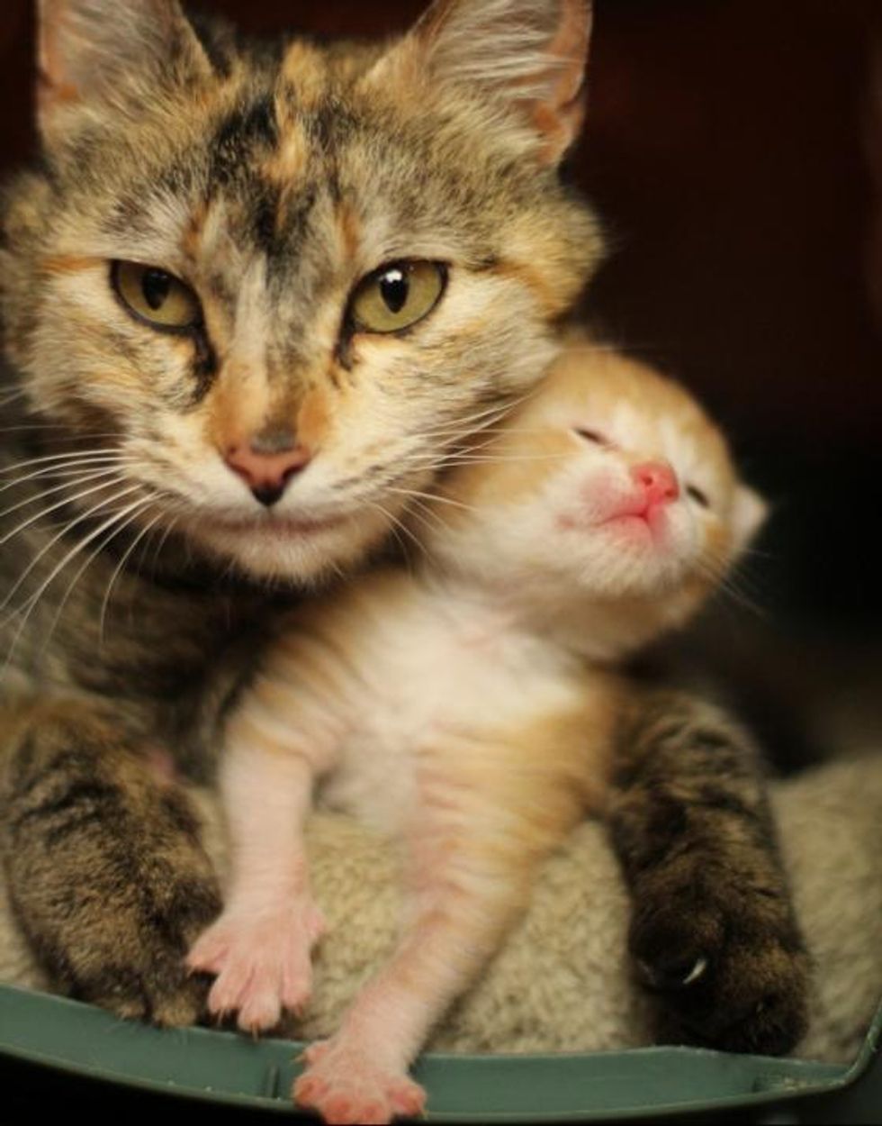She is a good cat mama who takes care of her litter of fuzzballs tirelessly. "I can't imagine having to keep a crew kittens in line twenty-four seven," said Jean who rescued the furry family and gave them a second chance.