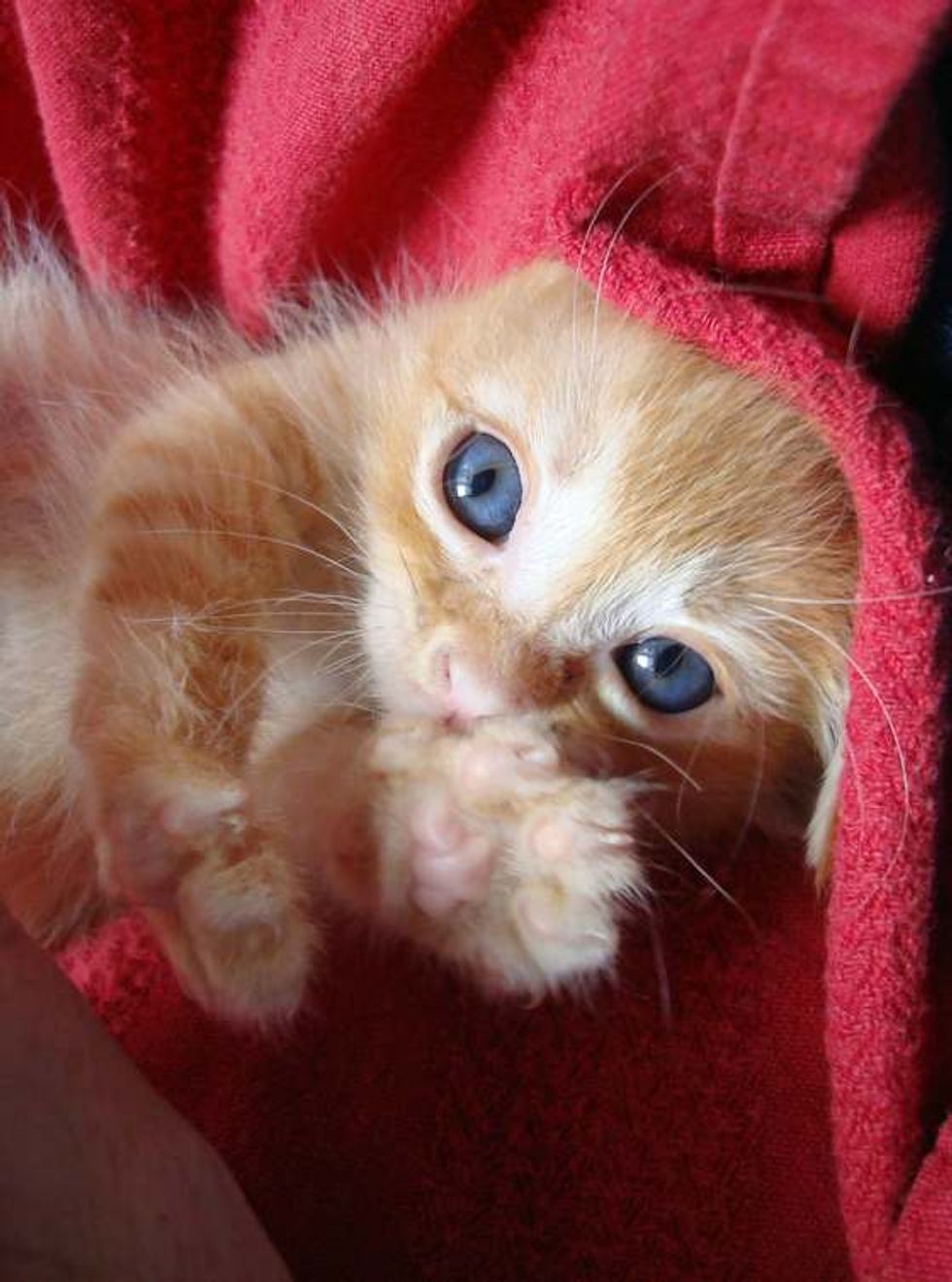 "When they handed him over Tuesday evening, he was cool to the touch even though he was wrapped in a blanket. Even after we got him warmed up, he wasn’t interested in eating. After he’d been sleeping for a few hours, I reached in to take him out and offer him some more formula, and I could see that he was breathing, but couldn’t wake him up. I was so sure that he was not going to last much longer, but he did eventually wake up. I got formula into him, and when I got up at 1 in the morning to check on him and give him more formula, he was so bright-eyed and happy that he was like another kitten entirely," Robyn wrote on her blog.