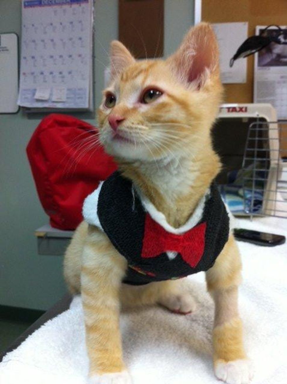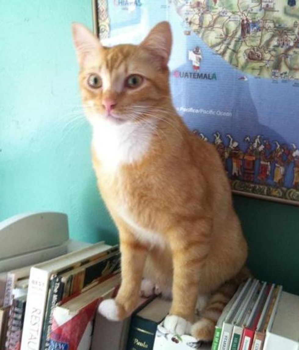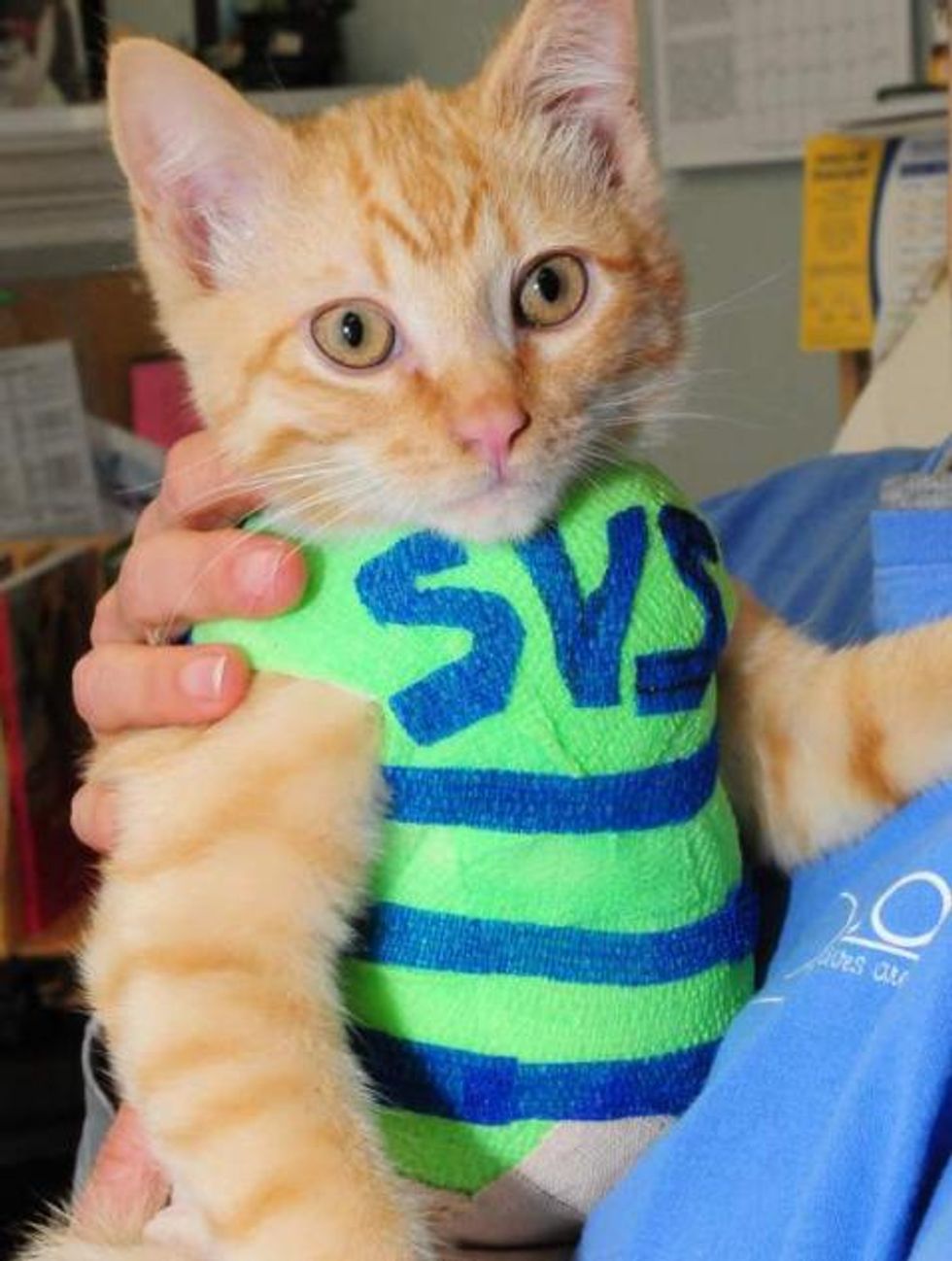 Paolo was born in the wild with his siblings. They were rescued and brought into a foster home. When this small kitten played, he ran out of breath very quickly. This was due to a concave ribcage, pushing his heart and lungs to the side. Paolo had a surgery to correct this and wore a body cast while his body healed. Along the way, Paolo learned how to trust people in his journey of healing.