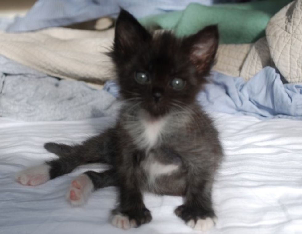 This little fuzzy guy with extra toes on his front paws has had quite a transformation. His name is Batman and he found his human through an unsual channel.