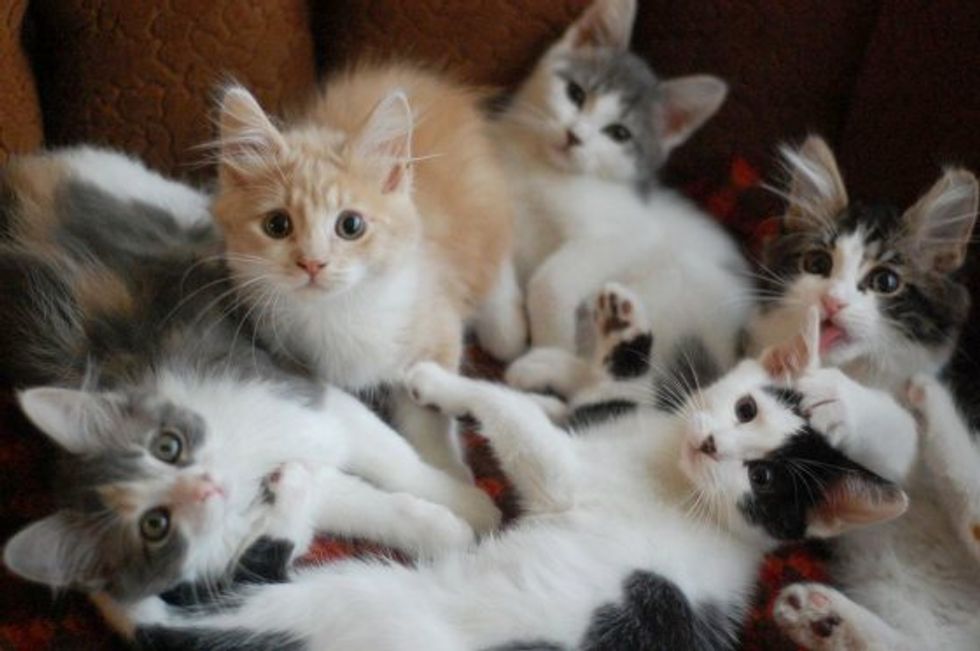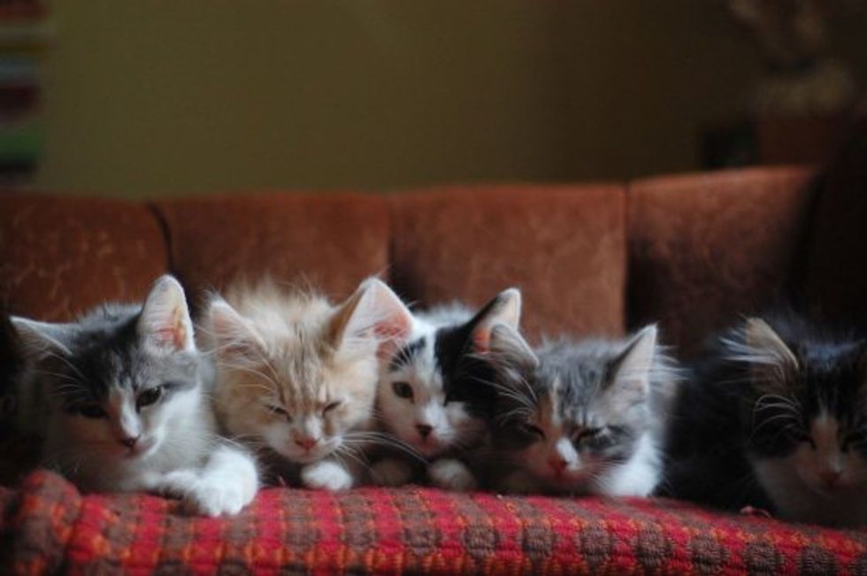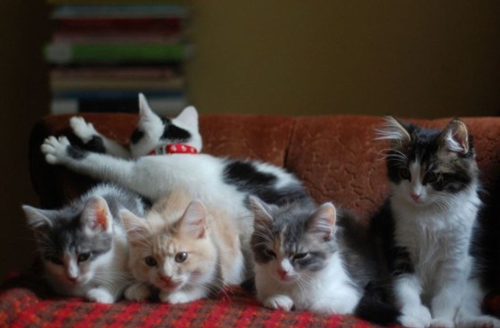 This brood of five very fuzzy foster kitties love to get sleepy, stretch, and settle down for a nap together. Meet the Furman five! "Even though there's a great deal of diversity in this group, they still look like a little family, don't they?" wrote Laurie C. on her blog Itty Bitty Kitty Committee.
