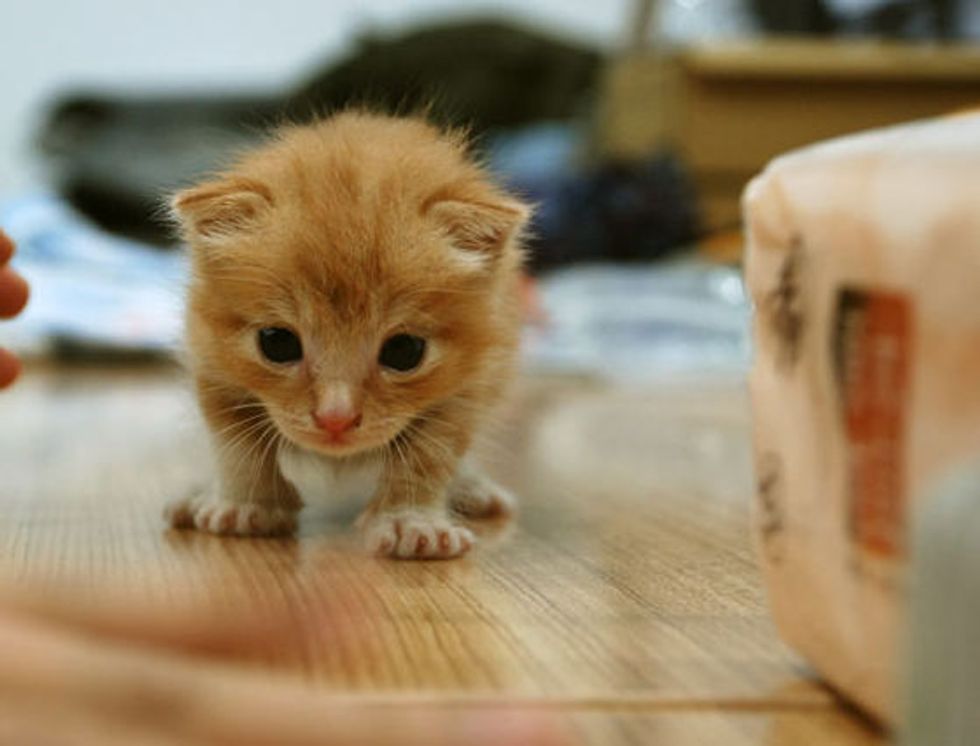 This tiny ginger boy was found and adopted by a kind person. He is only one week old, but his curiosity is off the chart. In just a day, he's explored every nook and cranny in the room.