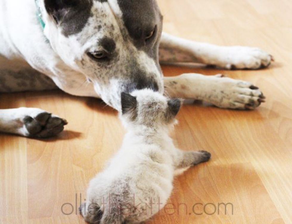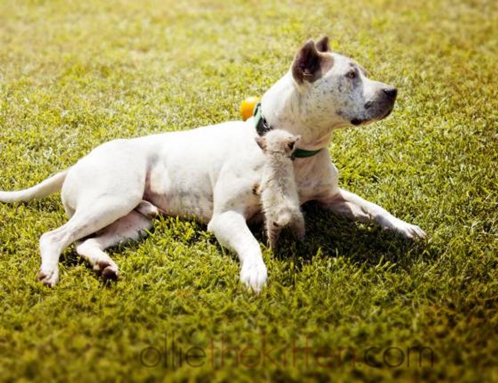 Their friendship started and grew each day as they spent more time together. Ollie was never intimated by his big canine friend. In fact, Ollie loves him and the two are inseparable.