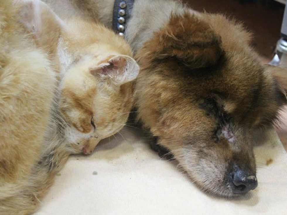 A ginger tomboy cat (Tom) in Japan nearly escaped death a few weeks ago. He is slowly getting better thanks to his new BFF, Double G the dog, who was rescued by the Japan Earthquake Animal Rescue and Support a few months ago.