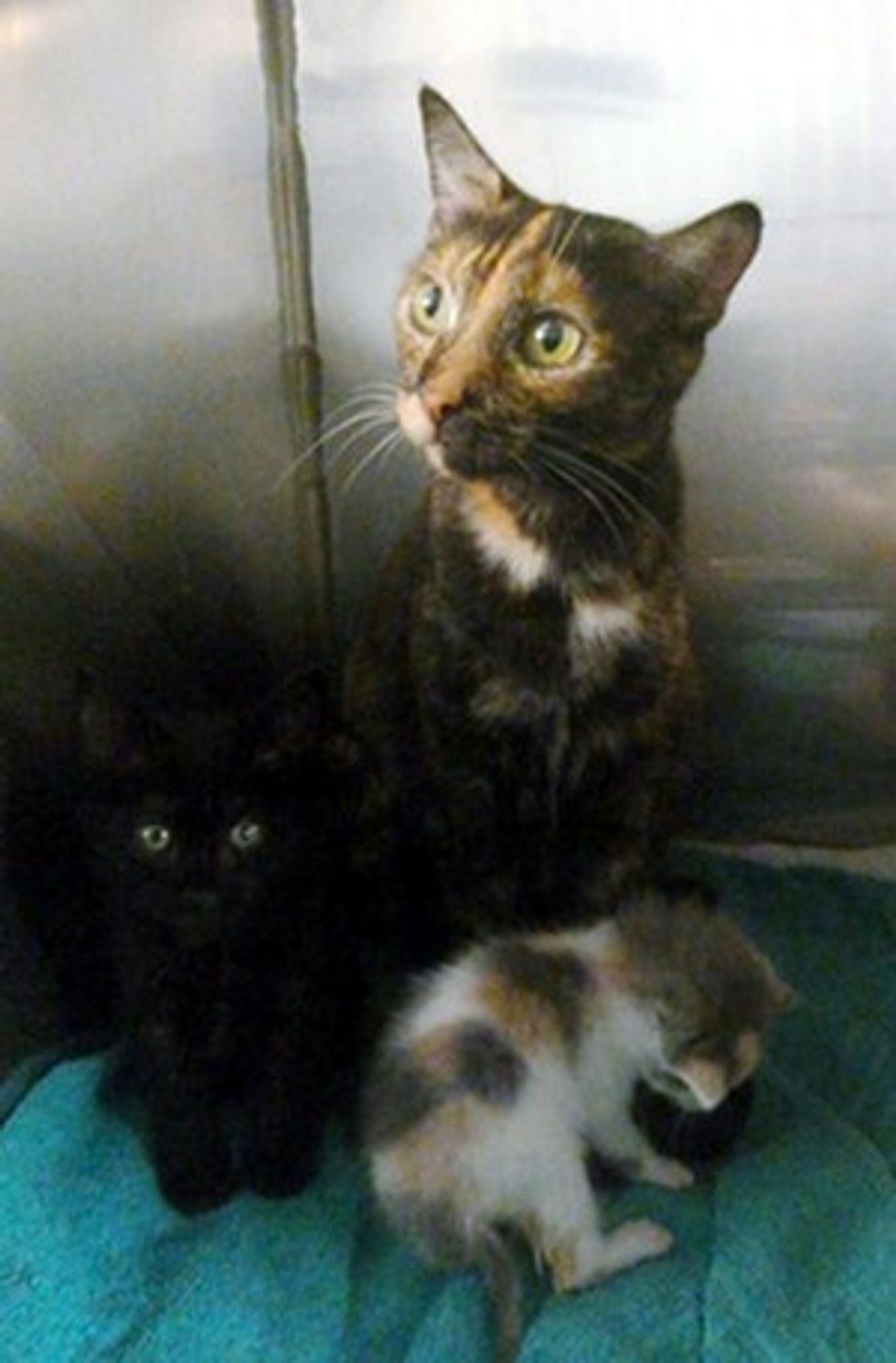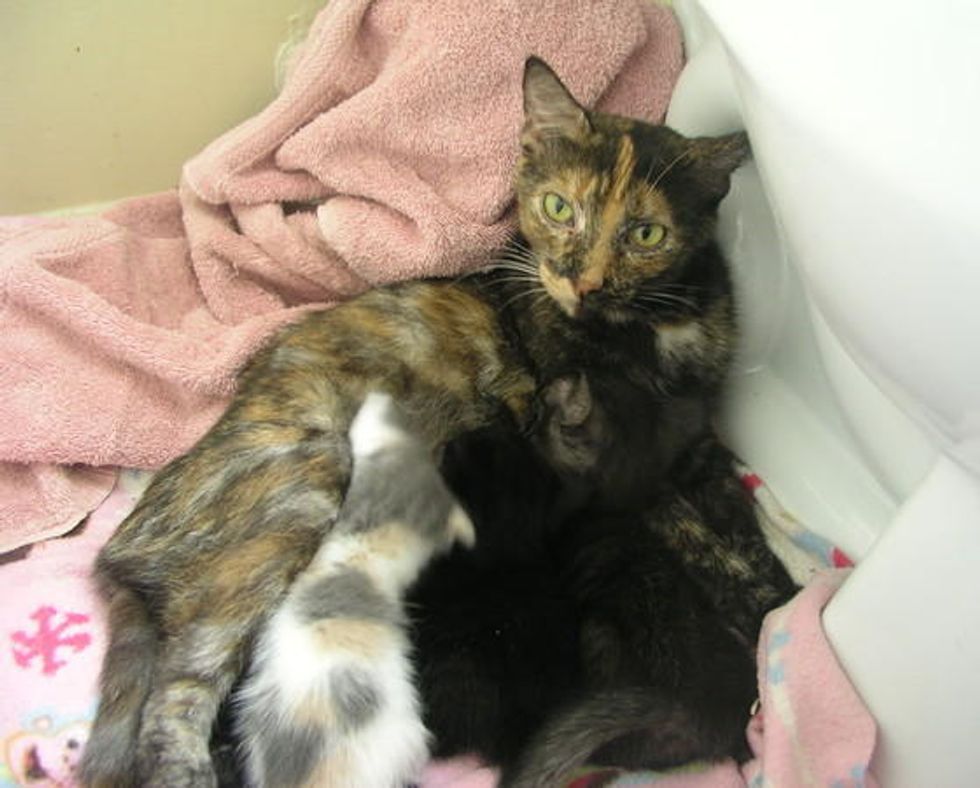 A super cat mama named Patra has touched many people with her story. She was a homeless 2-year-old Tortoiseshell from Avondale Estates, Georgia. Before she was rescued by LifeLine Animal Project, she lived a rough life on the streets, trying to keep her kittens safe, but the dangerous outdoors was too much for some of her babies. Only two of them survived. When Patra was brought into the shelter, her motherly instinct kicked in when she saw an orphan kitten. She took to them like a cat mother would to her own kittens.