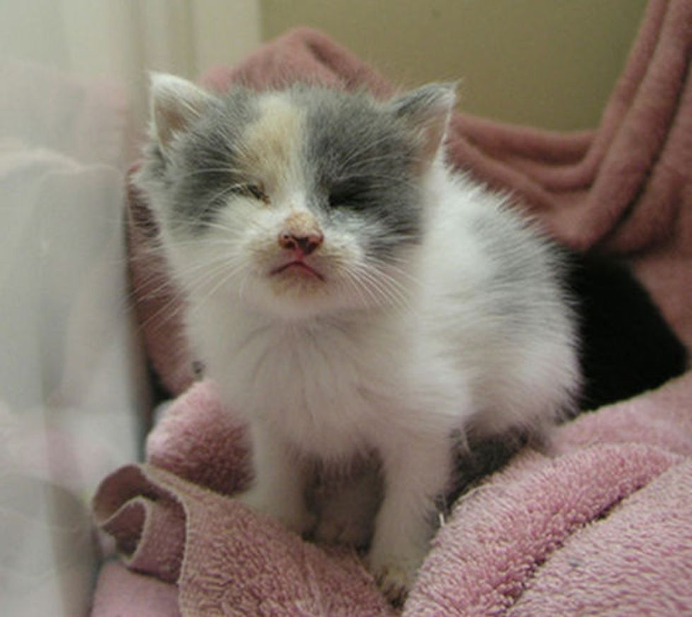 Echo, an abandoned kitten who was born without eyes, now is very loved by her new mom