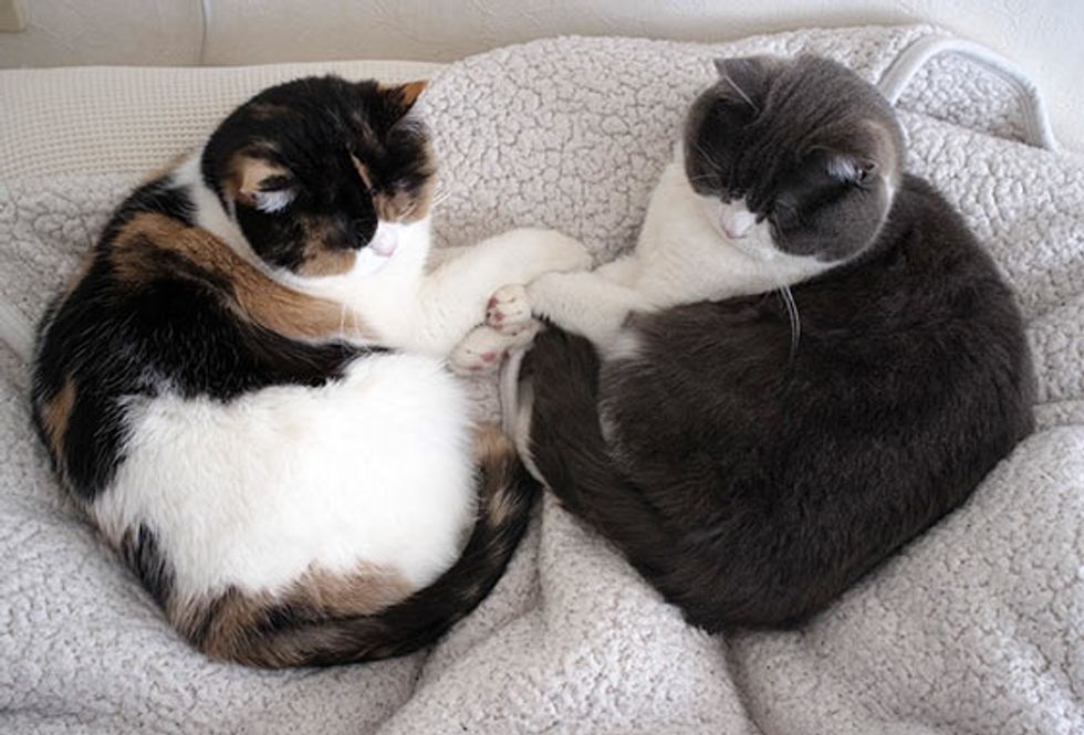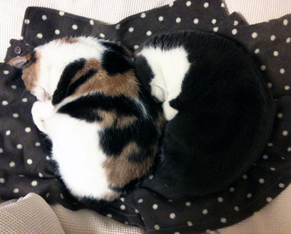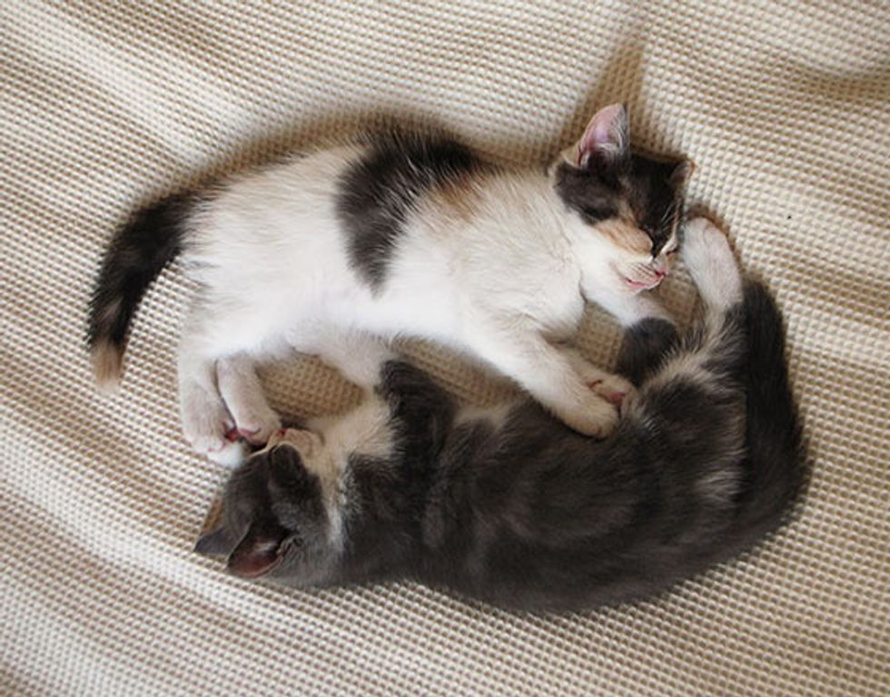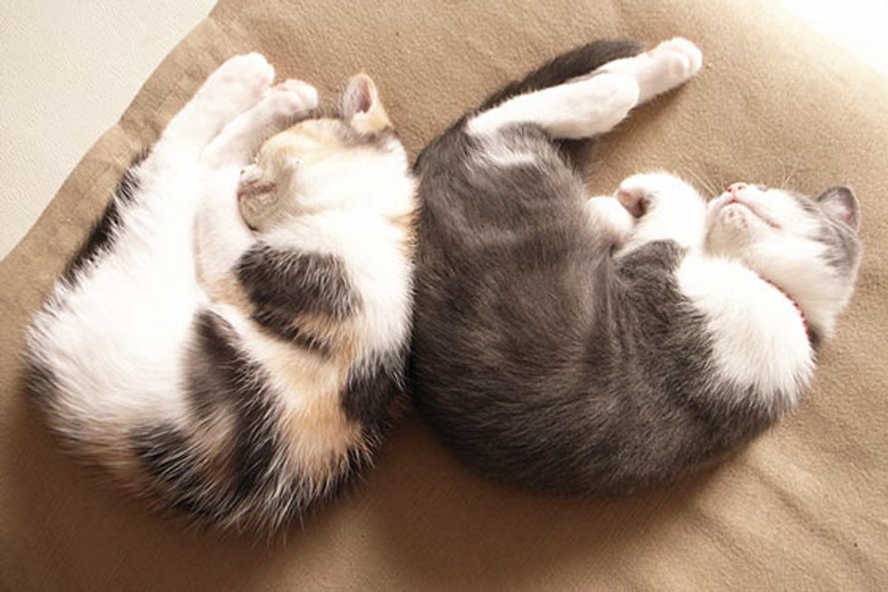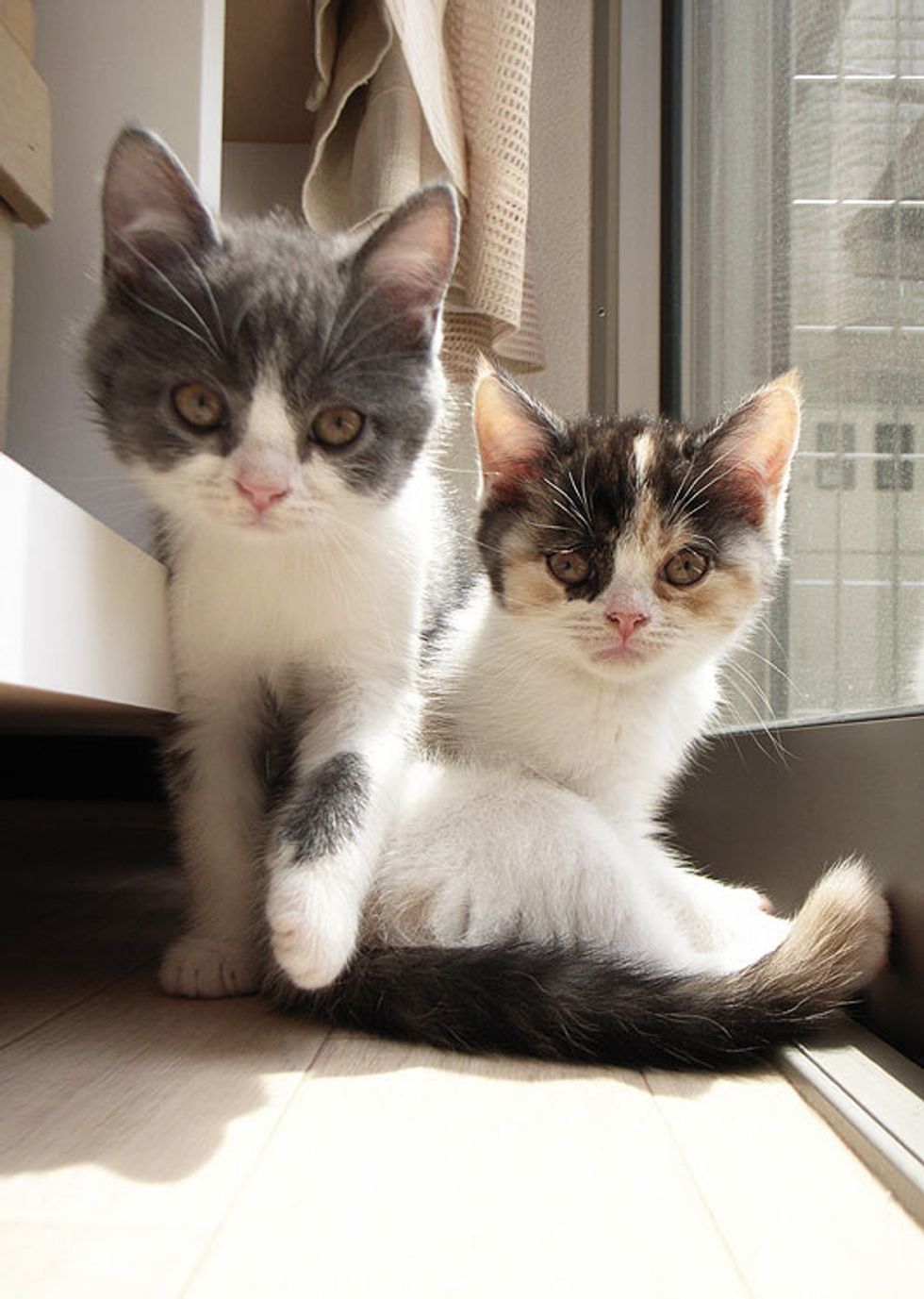 These two perk eared Scottish fold kitties have never been away from each other. They sleep, eat, and play together, even do things in synch. See these then and now photos of the siblings. They are fully grown now, but they still do the same things they did as kittens.